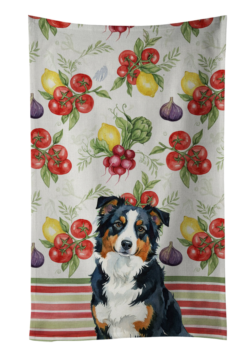 Kitchen Towel featuring breed specific American Shepherd artwork. Bring cozy everyday charm to your sink or powder room with a plush velour towel featuring original watercolor artwork. The front is a soft, color-rich minky polyester that polishes glassware to a brilliant shine; the back is 100% white cotton terry loop for quick absorbency on hands, dishes, and counters. Artwork is dyed into the fibers for lasting color that won’t crack or peel. Finished edges keep the shape wash after wash. Size: 15" x 25". Machine wash; tumble dry low. Designed and printed in the USA.