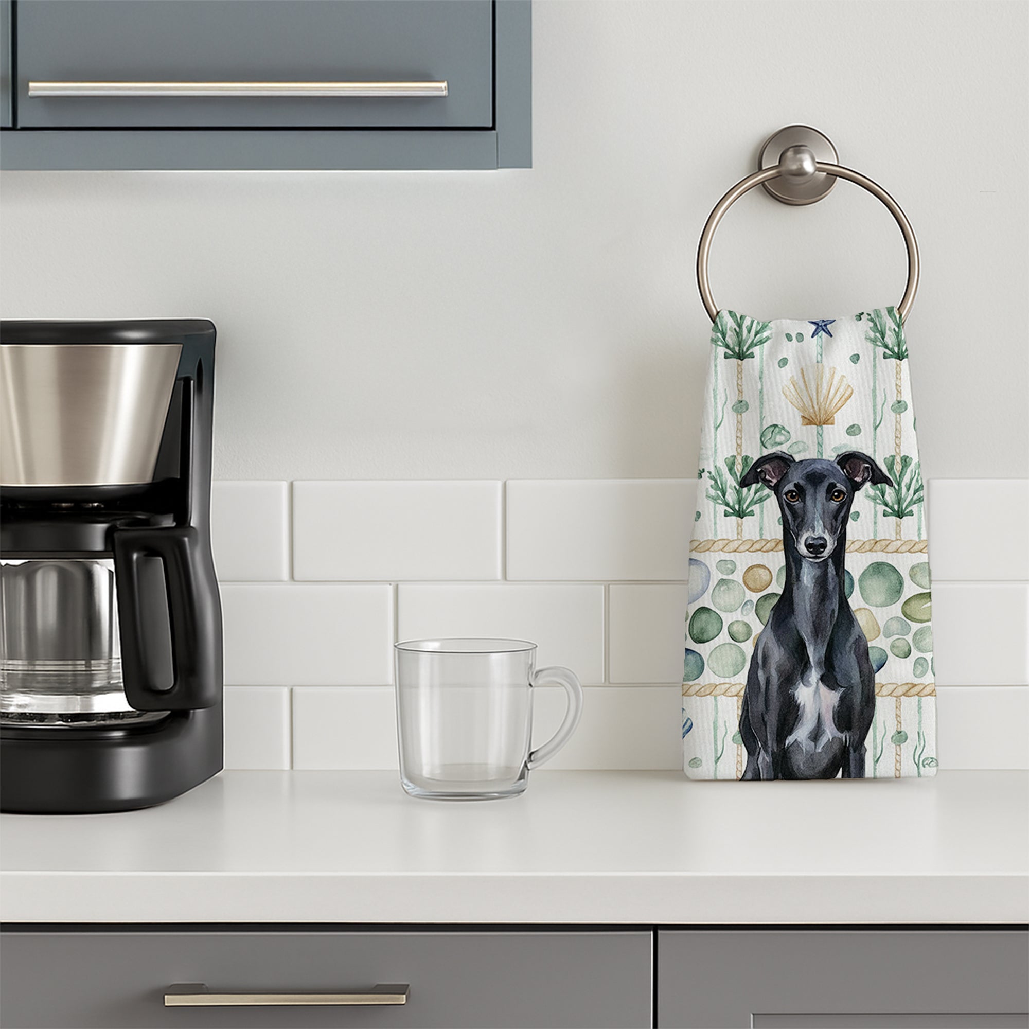Black Whippet Coastal Sea Glass Kitchen Towel