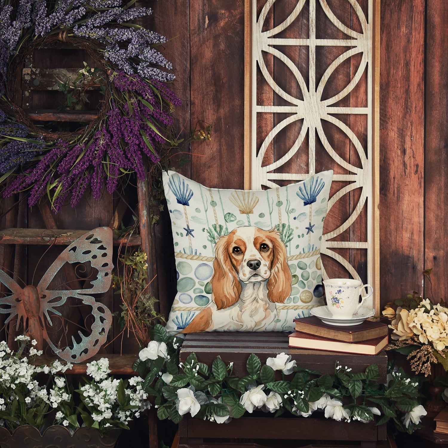 Blenheim Cavalier Spaniel Coastal Sea Glass Throw Pillow