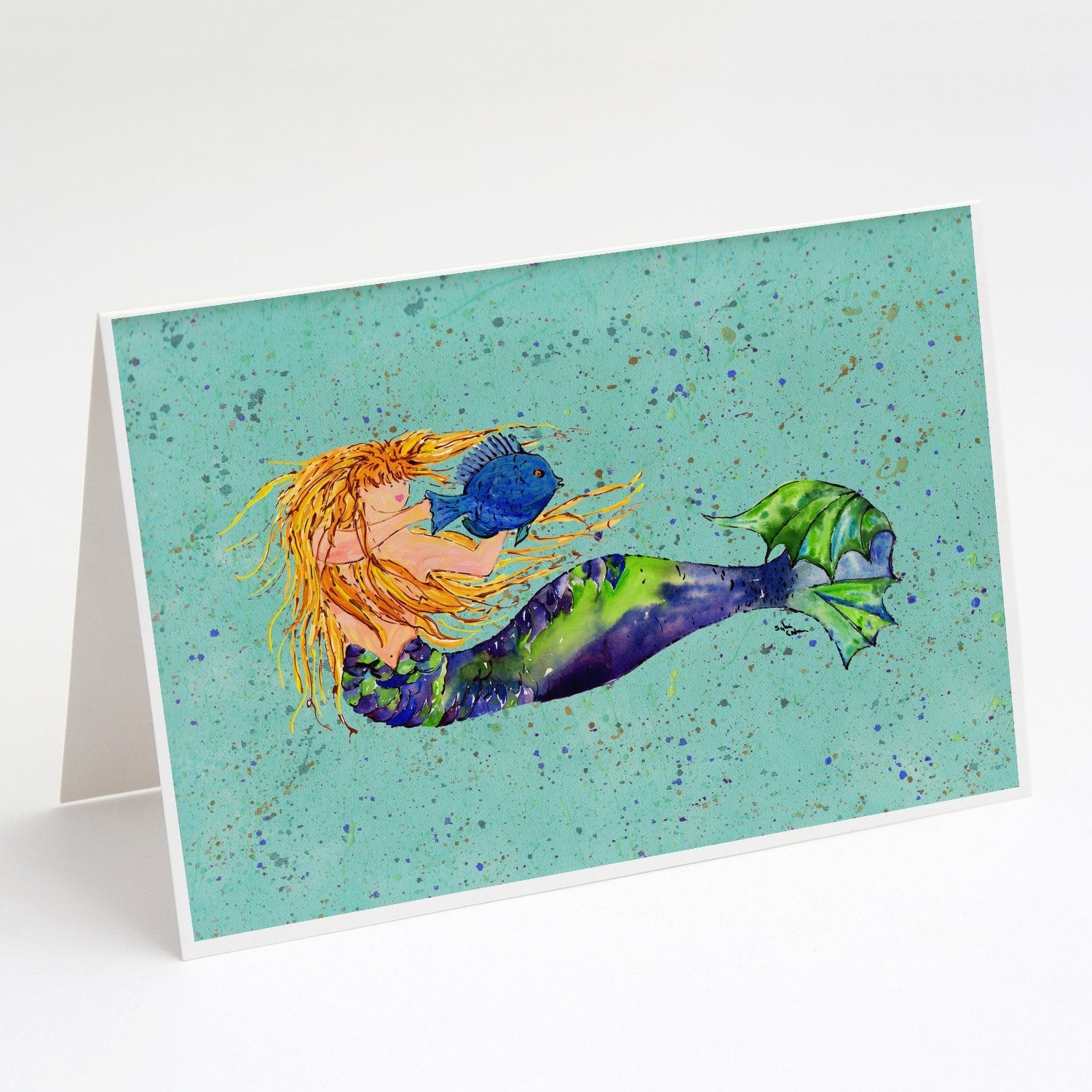 Blonde Mermaid on Teal Greeting Cards -  Blank Note Cards – 8-Pack of Artist-Designed Cards with Envelopes