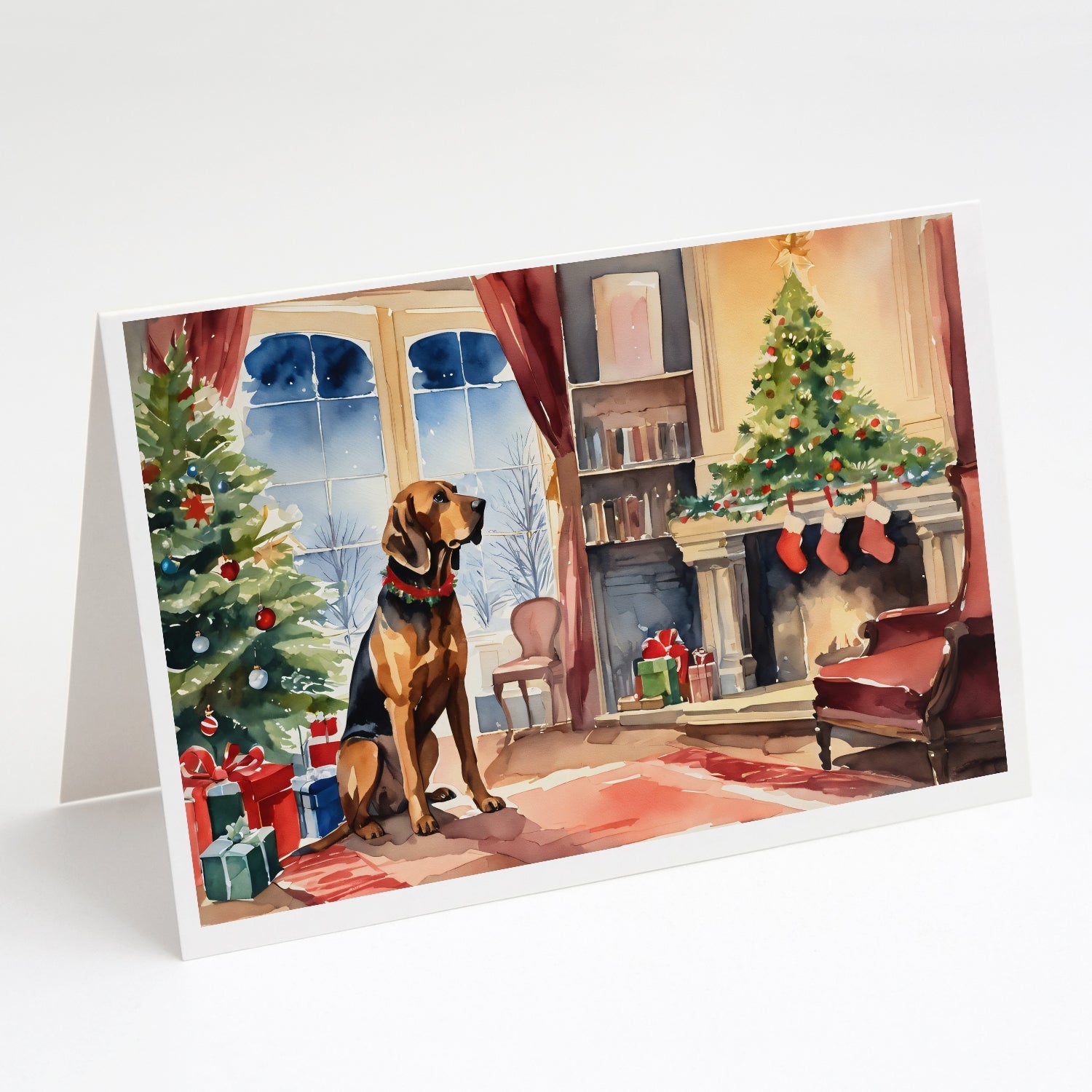 Bloodhound Cozy Christmas Greeting Cards - Blank Note Cards – 8-Pack of Artist-Designed Cards with Envelopes