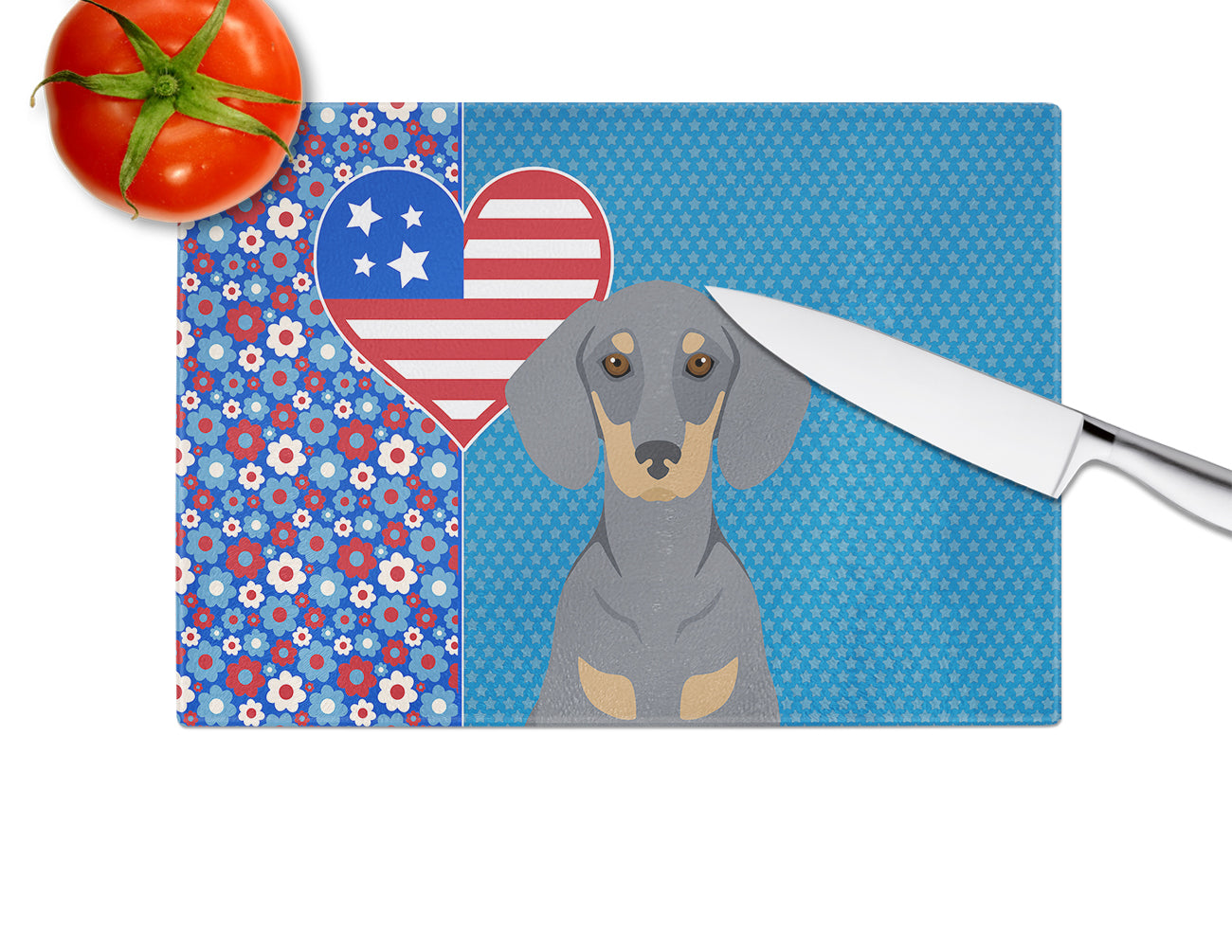 Decorate your space with our Dachshund artwork on a Cutting Board. Introduce your kitchen to the vibrant, large Decorative Glass Cutting Board from Caroline's Treasures. Crafted from resilient tempered glass, this board is not only a utilitarian necessity but also a colorful art piece. With its generous dimensions of 15 inches in height and 12 inches in length, it offers ample space for all your cutting needs. Every piece showcases captivating artwork from distinguished artists, bringing an aesthetic edge to your kitchen. Beyond its attractive design, this cutting board ensures your countertop stays pristine and unscathed, owing to its heat-resistant properties. Engineered with user convenience in mind, it features non-skid feet for stability, and rounded corners for additional safety. Its robust construction renders it virtually unbreakable, guaranteeing longevity. The board comes with protective feet bumpers, maintaining its position during use. This product is recommended to be hand washed only. Proudly printed and assembled in the United States, this cutting board exemplifies superior craftsmanship. With Caroline's Treasures' Decorative Glass Cutting Board, you're investing in a blend of functionality and artistic flair.