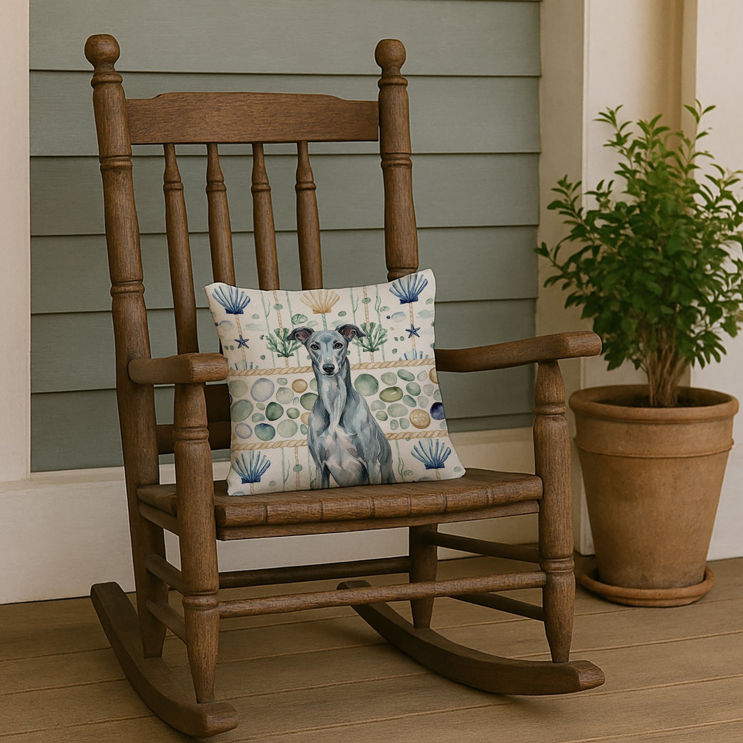 Throw Pillow featuring breed specific Greyhound artwork. Add a touch of vibrancy and comfort to your outdoor seating with Caroline's Treasures Fabric Decorative Pillow. Measuring approximately 14 inches by 14 inches, this outdoor pillow is crafted to elevate the appeal of your patio furniture, infusing it with vivid color and artistic flair. The pillow includes a 100% Polyester Fabric sham filled with a quality pillow form to provide superior comfort. Innovatively made from our brand new material, specifically woven for its water resistance, this pillow is designed for durability. The soft canvas fabric offers versatility in use, fit for your indoor couch or your outdoor patio, porch, or veranda. The fabric is dyed with colorfast dyes built for resilience against weather conditions, ensuring the pillow retains its beauty over time. Constructed by sewing three fabric pieces to create a sham, the polyester insert is then nestled inside to form the pillow, resulting in an overstuffed pillow that maintains its shape. Both the sham and the pillow insert are proudly made in the United States. As the pillows are handcrafted, there may be minor variations in size, further enhancing their unique charm. Experience comfort in style with Caroline's Treasures Fabric Decorative Pillow.
