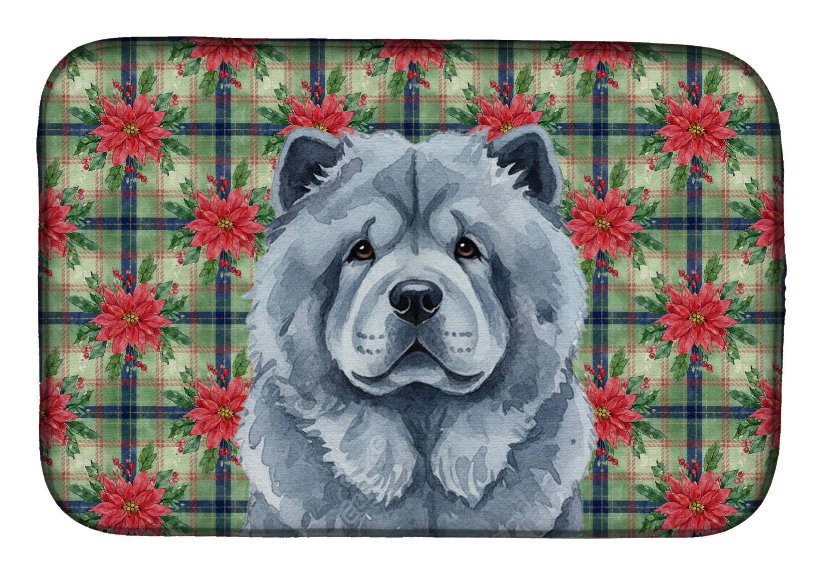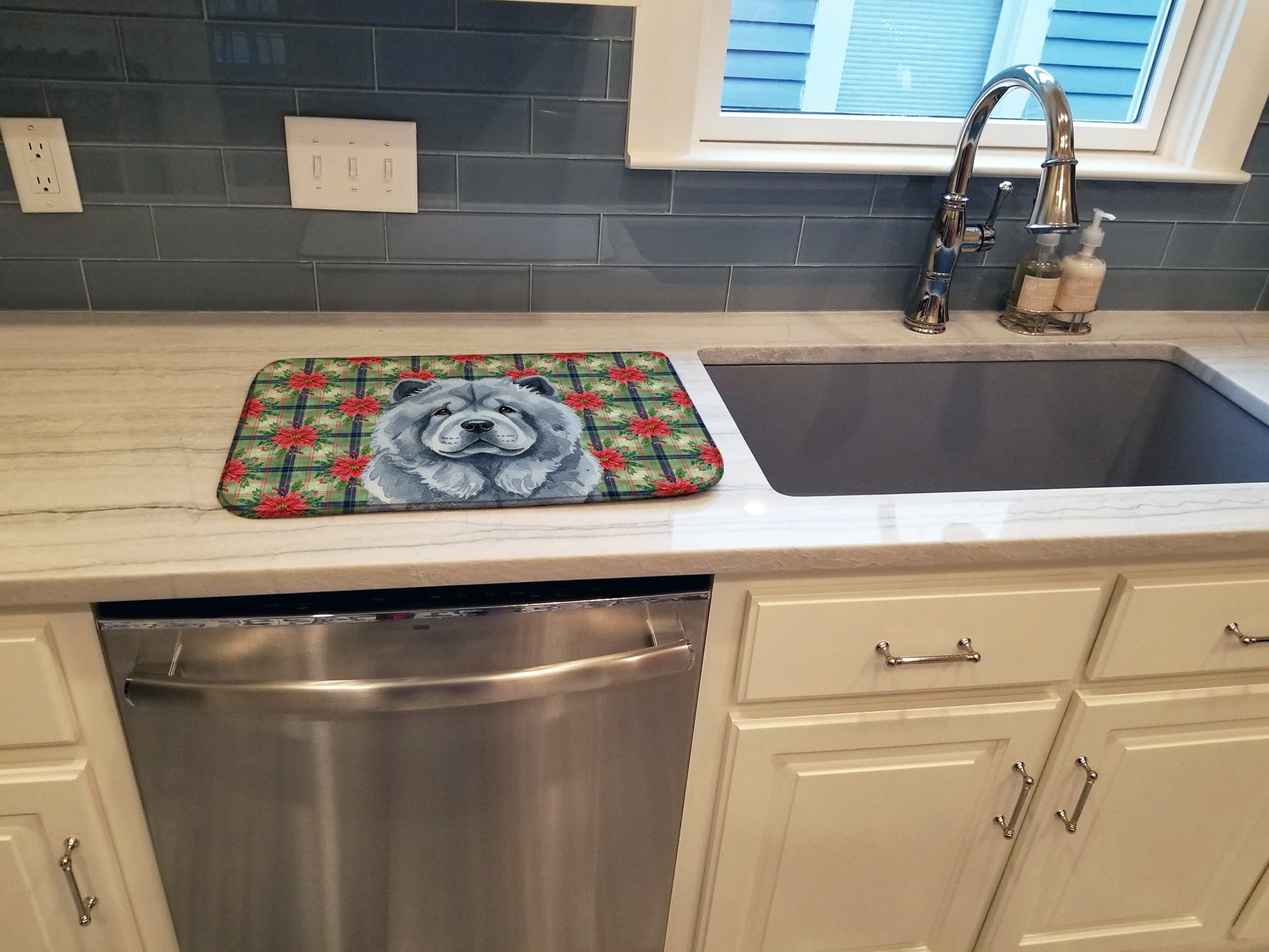 Dish Drying Mat featuring breed specific Chow Chow artwork. Celebrate Christmas with this Christmas Dish Drying Mat. Say goodbye to messy countertops and soggy dish towels with our innovative dish drying mat. Our high-quality dish drying pad is designed to keep your countertops dry while offering a stylish and efficient solution. Whether you're air drying dishes, glasses, stemware, silverware, pots, pans, bottles, or even fruits and vegetables, our dish mat is the perfect choice. The 14 inches x 22 inches size fits most counters and dish drying racks, and the non-slip design ensures stability. Made with water-absorbent polyester and a polyurethane foam insert, our dish drying mat is not only functional but also durable. It's machine washable and printed in the USA for long-lasting use. The beautiful artwork adds flair to your kitchen decor, making it a perfect housewarming gift or present for any occasion. Upgrade your kitchen experience with our absorbent and versatile dish drying mat.