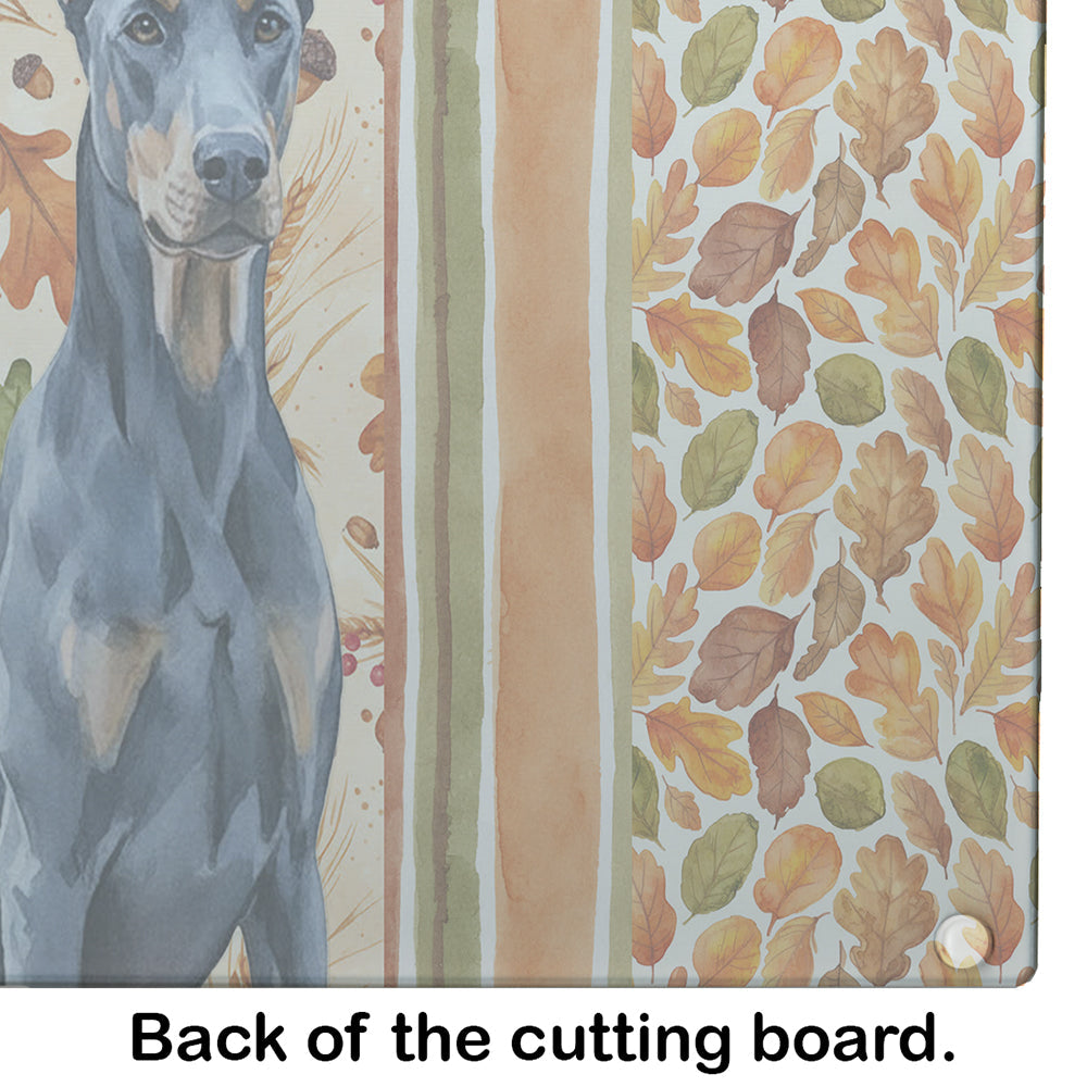 Blue Doberman Pinscher Heirloom Fall Glass Cutting Board