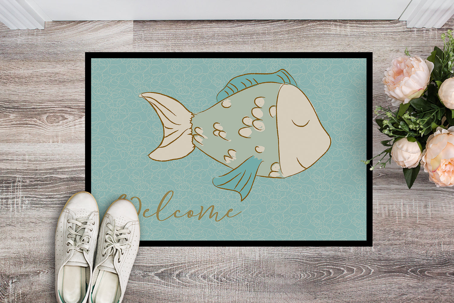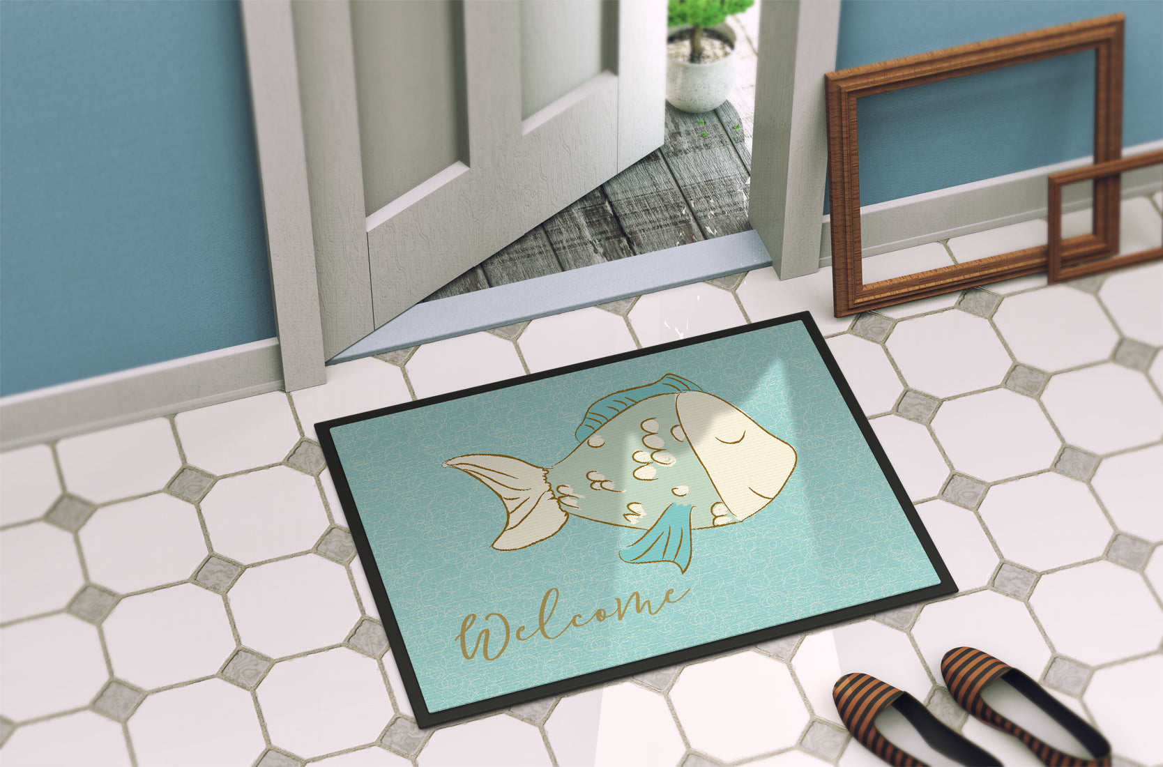 Blue Fish Welcome Doormat - 24x36 Decorative Floor Mat – Indoor/Outdoor Rug with Artistic Flair BB8549JMAT