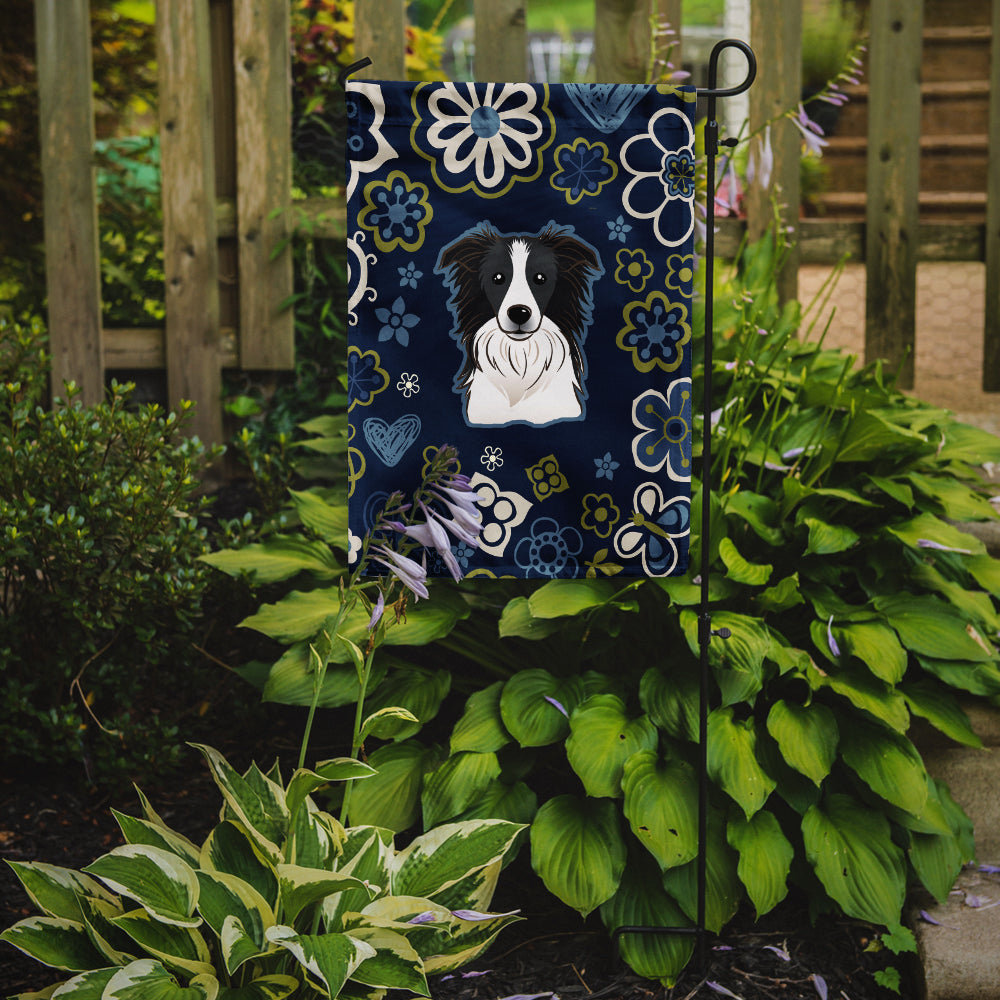 Blue Flowers Border Collie Garden Flag - Outdoor Decorative Yard Flag