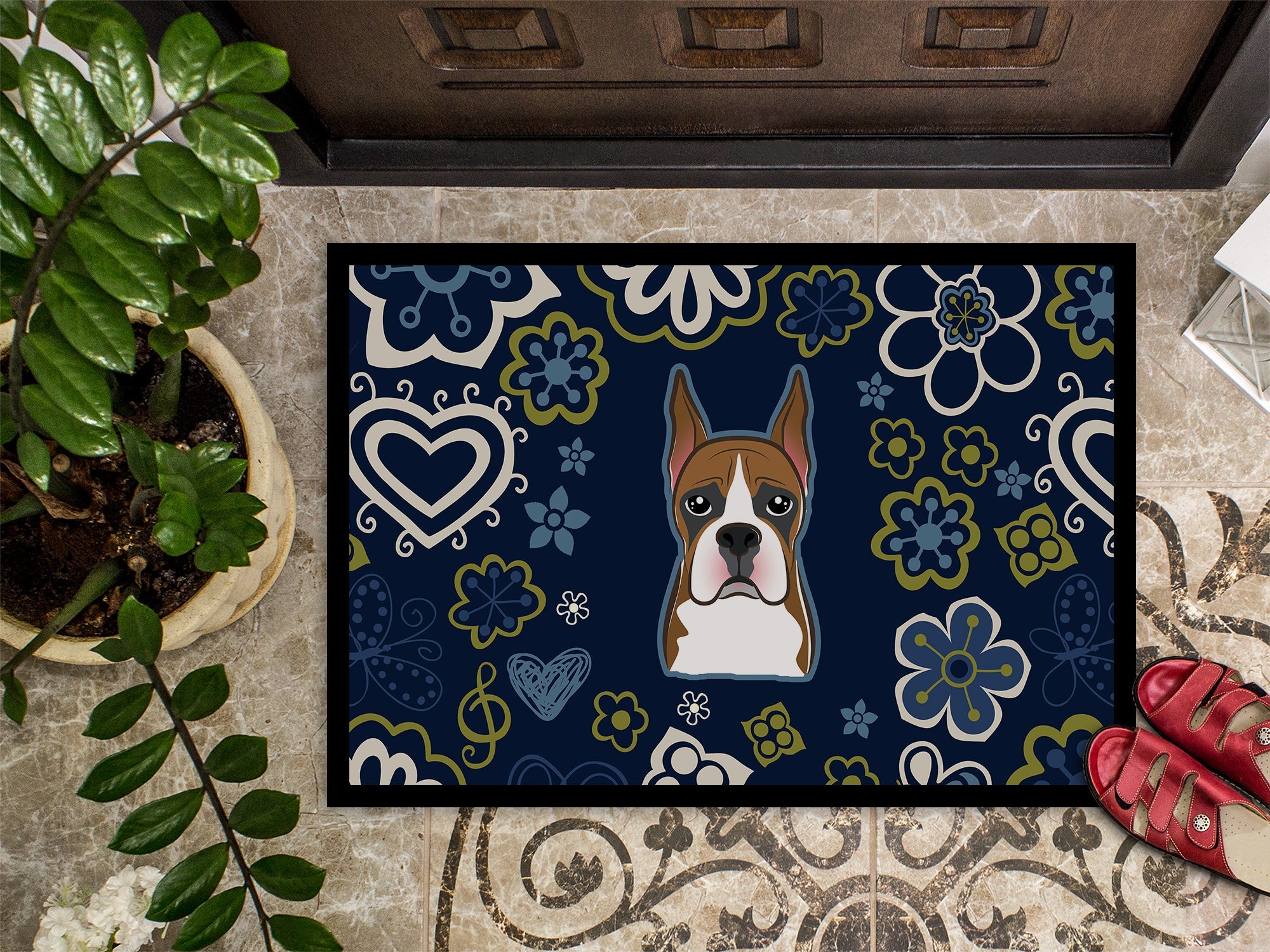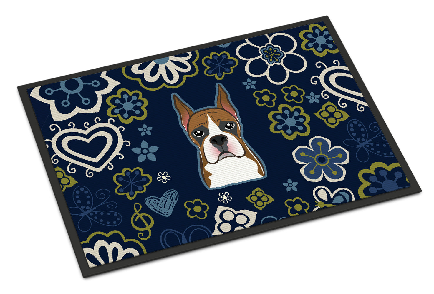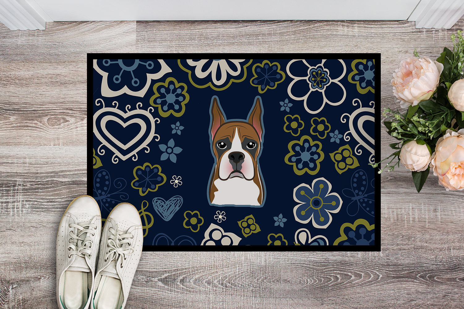 Blue Flowers Boxer Doormat - 24x36 Decorative Floor Mat – Indoor/Outdoor Rug with Artistic Flair BB5074JMAT