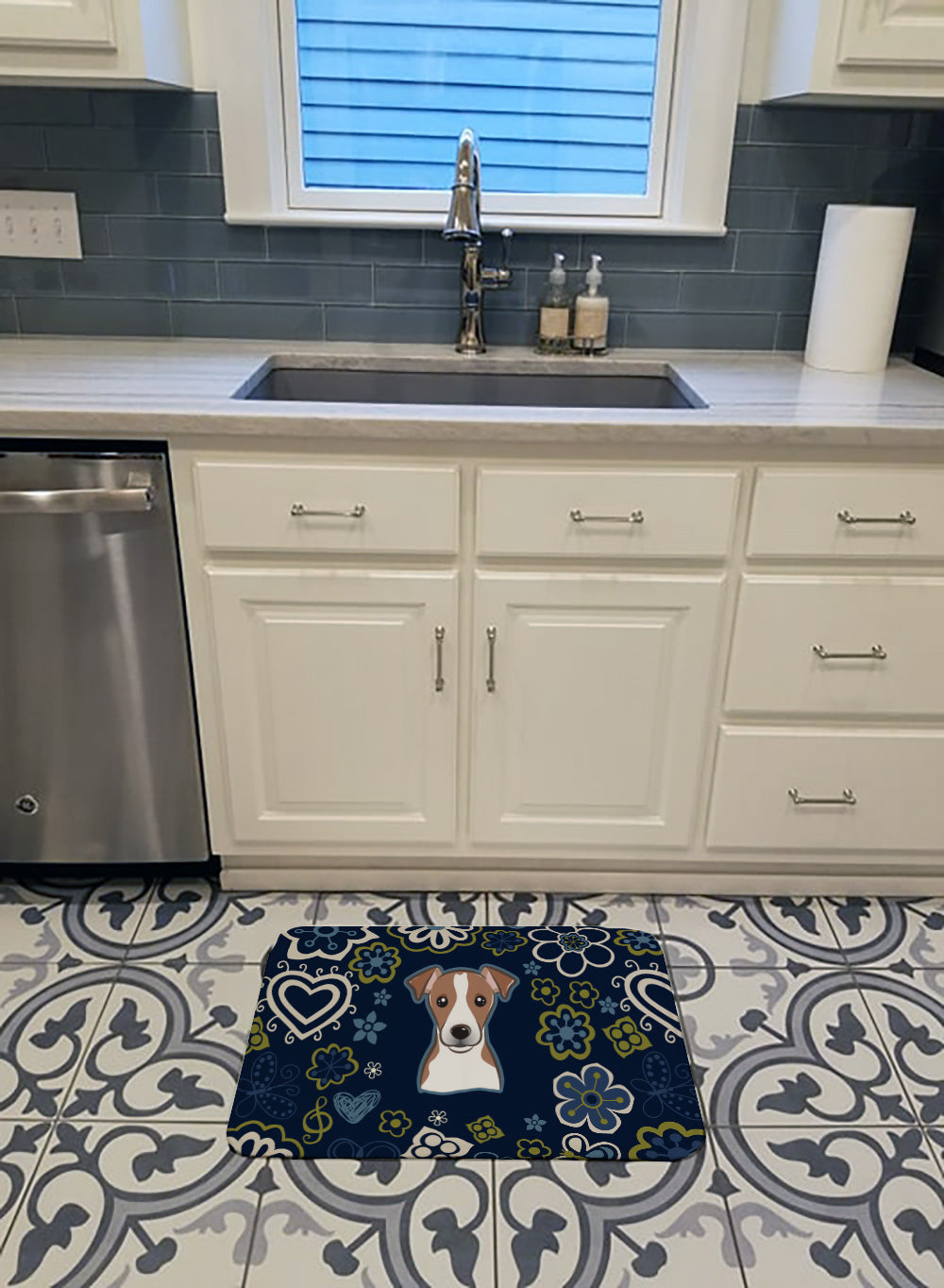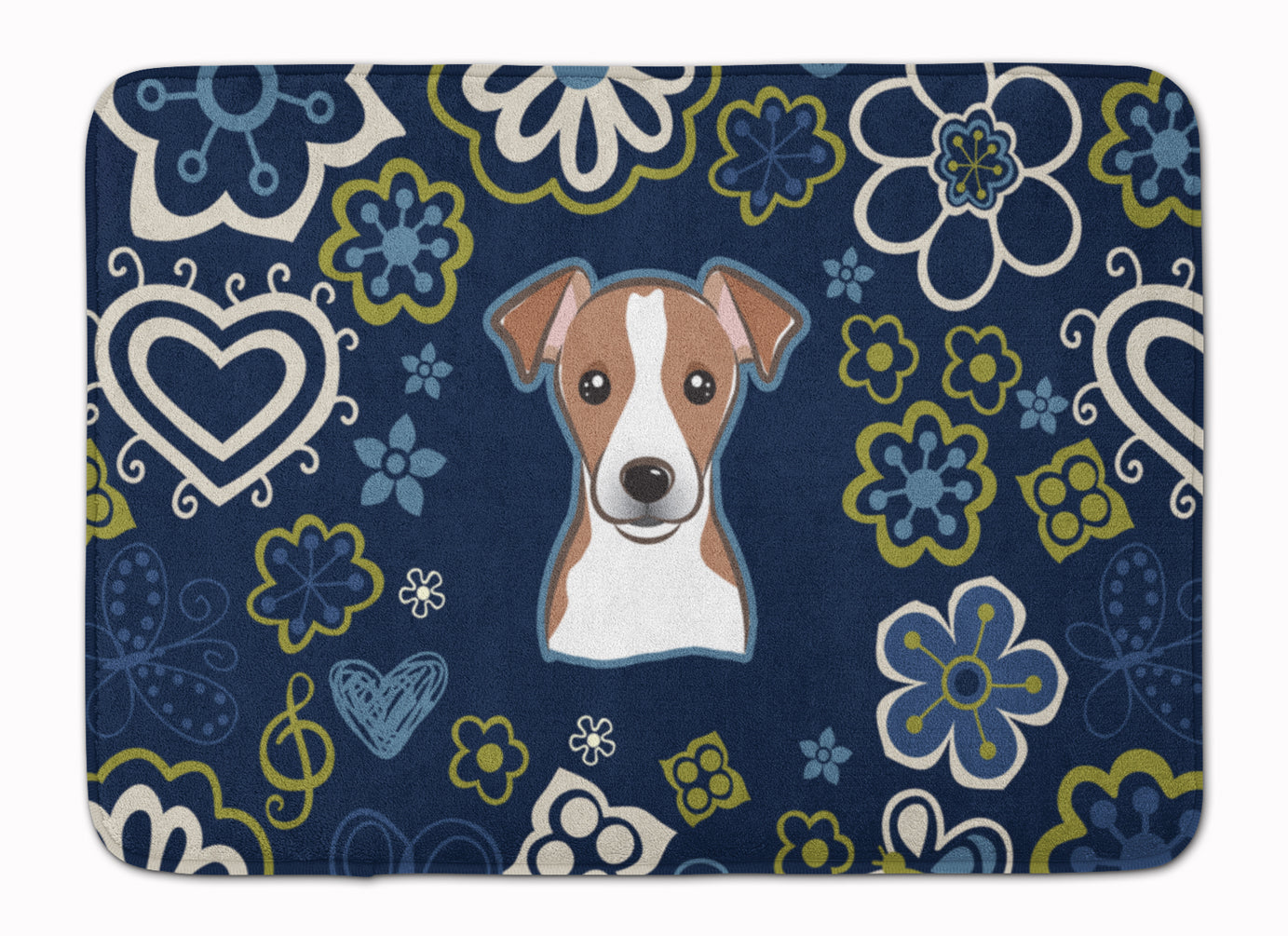 Blue Flowers Jack Russell Terrier Machine Washable Memory Foam Mat BB5111RUG
