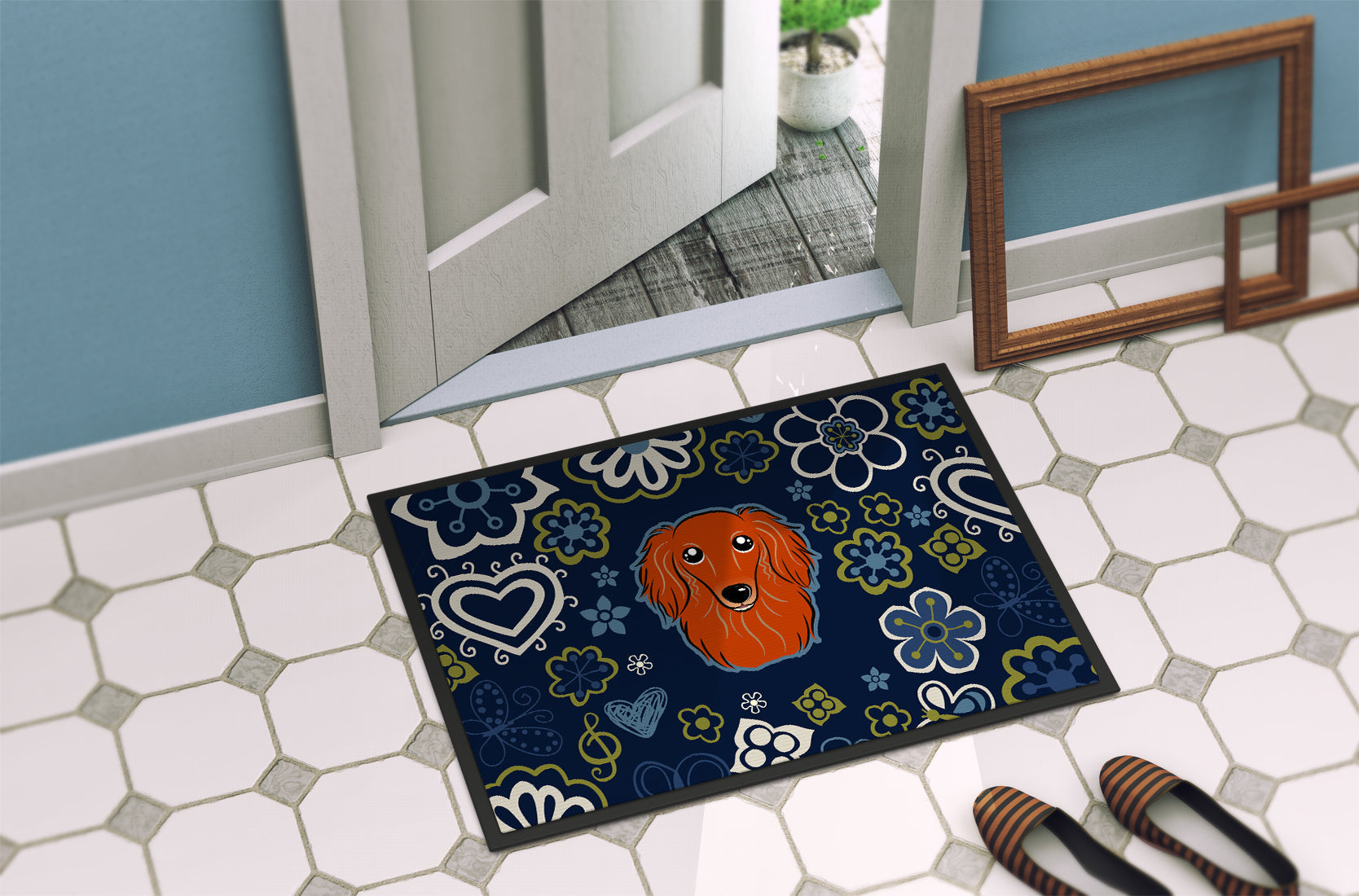 Blue Flowers Longhair Red Dachshund Doormat - 24x36 Decorative Floor Mat – Indoor/Outdoor Rug with Artistic Flair BB5065JMAT