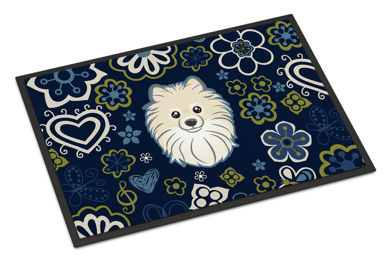 Decorate your space with our Pomeranian artwork on a Doormat. Welcome your guests in style with our Artwork Door Mat, designed to withstand almost any weather condition. This mat, measuring approximately 24 by 36 inches, is held together by durable black binding tape. Its top layer, composed of polyester felt, is dyed with the eye-catching image you see on the mat. A few layers below provide the mat with stability, while its rubber bottom is stamped to help prevent slipping and ensures safety. Our mat works wonderfully as both an indoor or outdoor door mat. For cleaning, simply hose it off with water or use a power washer - no need for any cleaner that produces suds. Avoid scrubbing with a brush, instead, opt for the vacuum on floor setting. Designed manufactured and printed in the USA, this mat is a perfect addition to your porch, outdoor kitchen, entryway, or any indoor space. Its unique design makes it a charming decorative rug that greets your guests and adds a stylish touch to your home decor.