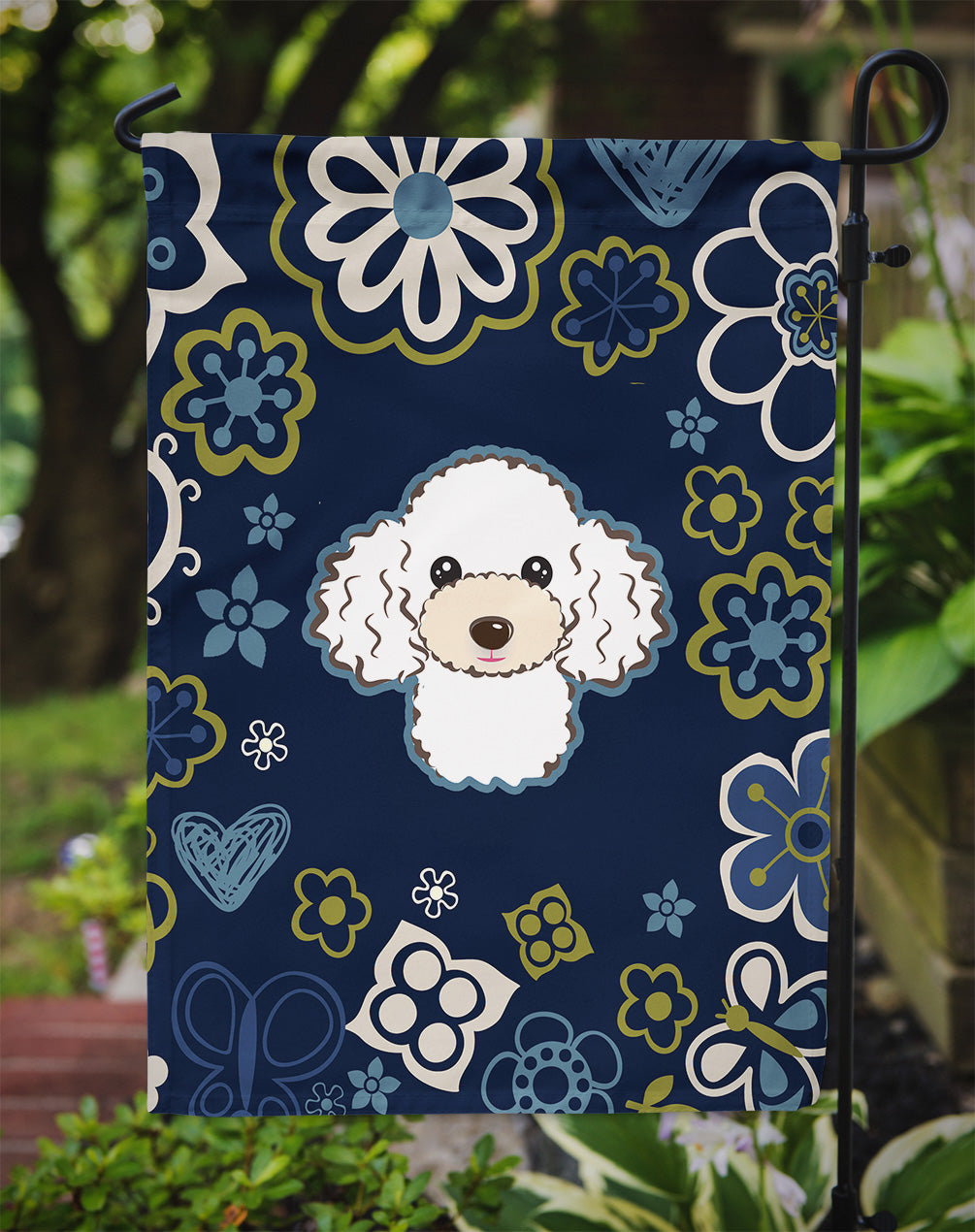 Decorate your space with our Poodle artwork on a Garden Flag. Enhance the beauty of your garden, patio, or yard with Caroline's Treasures Decorative Garden Flag, proudly made in the USA. Crafted from two pieces of thick, double-sided polyester fabric, this 2-ply garden flag is designed to withstand various weather conditions, making it water-resistant and weatherproof. Featuring correctly readable words on both sides, this garden flag offers a delightful visual experience from any angle. With its heavier weight, it stands out among other garden flags, ensuring stability and durability even in wind, rain, and snow. Measuring approximately 11 1/4 inches by 15 1/2 inches, this flag allows you to personalize your outdoor decor. It comes with a 1 1/2-inch sleeve sewn in, allowing easy attachment to any standard garden flag stand or garden size porch hanger (sold separately). Make a statement in your outdoor space with Caroline's Treasures Decorative Garden Flag, a vibrant and high-quality flag that adds color and personality to your surroundings. Proudly made in the USA, it's a symbol of quality craftsmanship and attention to detail.