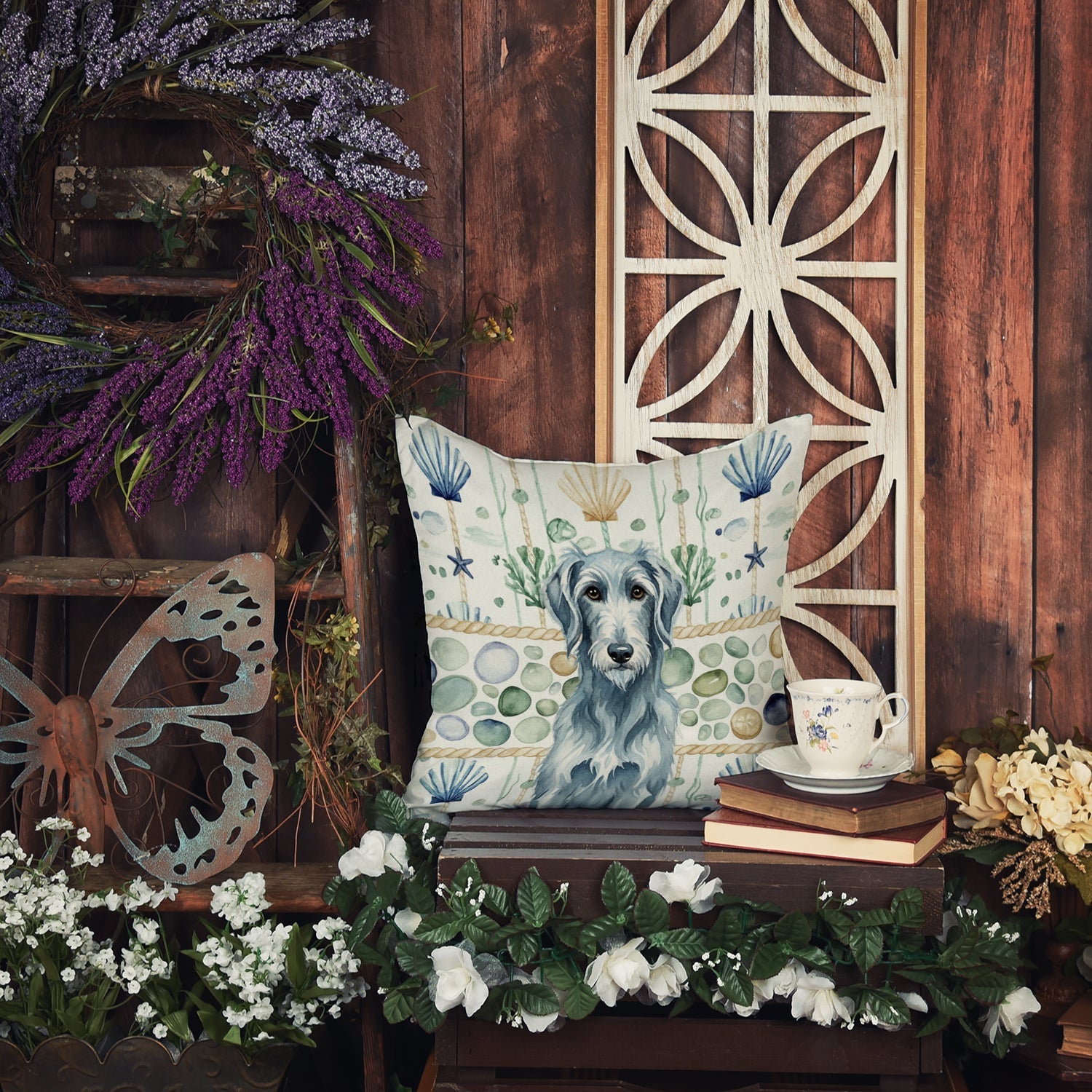 Throw Pillow featuring breed specific Scottish Deerhound artwork. Add a touch of vibrancy and comfort to your outdoor seating with Caroline's Treasures Fabric Decorative Pillow. Measuring approximately 14 inches by 14 inches, this outdoor pillow is crafted to elevate the appeal of your patio furniture, infusing it with vivid color and artistic flair. The pillow includes a 100% Polyester Fabric sham filled with a quality pillow form to provide superior comfort. Innovatively made from our brand new material, specifically woven for its water resistance, this pillow is designed for durability. The soft canvas fabric offers versatility in use, fit for your indoor couch or your outdoor patio, porch, or veranda. The fabric is dyed with colorfast dyes built for resilience against weather conditions, ensuring the pillow retains its beauty over time. Constructed by sewing three fabric pieces to create a sham, the polyester insert is then nestled inside to form the pillow, resulting in an overstuffed pillow that maintains its shape. Both the sham and the pillow insert are proudly made in the United States. As the pillows are handcrafted, there may be minor variations in size, further enhancing their unique charm. Experience comfort in style with Caroline's Treasures Fabric Decorative Pillow.