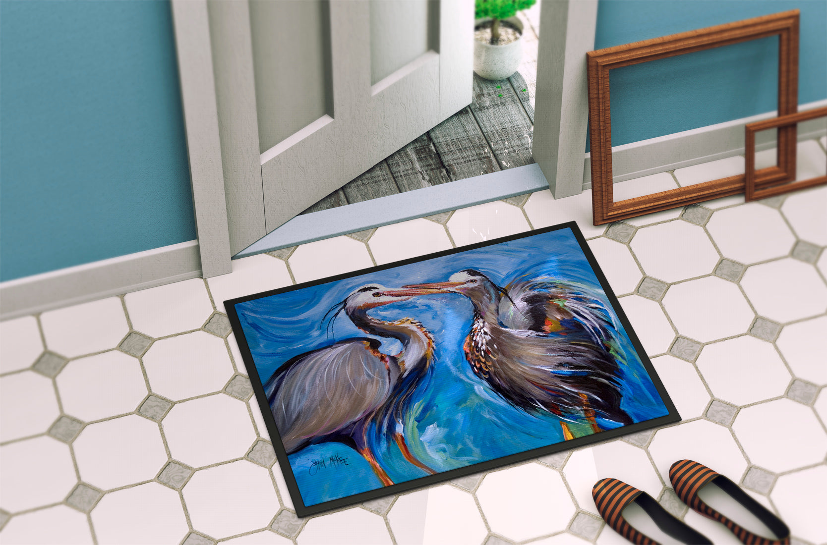 Blue Heron Love Doormat - 24x36 Decorative Floor Mat – Indoor/Outdoor Rug with Artistic Flair JMK1011JMAT
