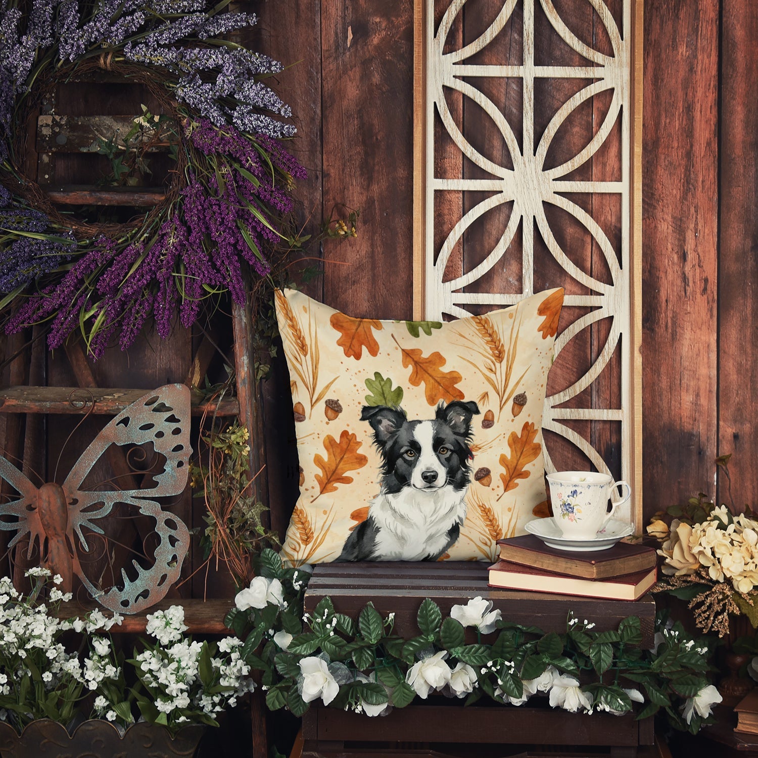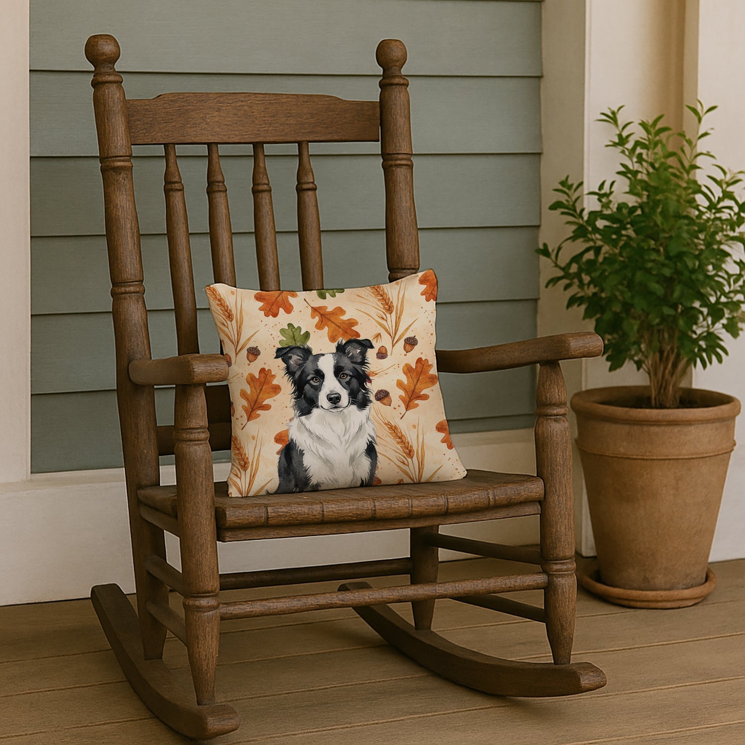 Throw Pillow featuring breed specific Border Collie artwork. Celebrate Thanksgiving with this Thanksgiving Pillow. Add a touch of vibrancy and comfort to your outdoor seating with Caroline's Treasures Fabric Decorative Pillow. Measuring approximately 14 inches by 14 inches, this outdoor pillow is crafted to elevate the appeal of your patio furniture, infusing it with vivid color and artistic flair. The pillow includes a 100% Polyester Fabric sham filled with a quality pillow form to provide superior comfort. Innovatively made from our brand new material, specifically woven for its water resistance, this pillow is designed for durability. The soft canvas fabric offers versatility in use, fit for your indoor couch or your outdoor patio, porch, or veranda. The fabric is dyed with colorfast dyes built for resilience against weather conditions, ensuring the pillow retains its beauty over time. Constructed by sewing three fabric pieces to create a sham, the polyester insert is then nestled inside to form the pillow, resulting in an overstuffed pillow that maintains its shape. Both the sham and the pillow insert are proudly made in the United States. As the pillows are handcrafted, there may be minor variations in size, further enhancing their unique charm. Experience comfort in style with Caroline's Treasures Fabric Decorative Pillow.