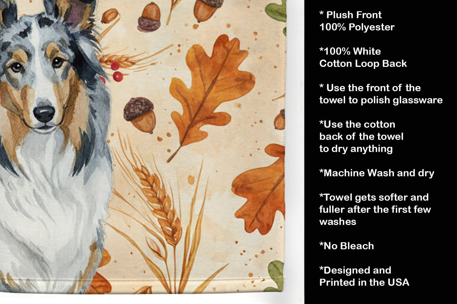 Kitchen Towel featuring breed specific Collie artwork. Celebrate Thanksgiving with this Thanksgiving Kitchen Towel. Bring cozy fall charm to your sink or powder room with a plush velour towel featuring original watercolor artwork. The front is a soft, color-rich minky polyester that polishes glassware to a brilliant shine; the back is 100% white cotton terry loop for quick absorbency on hands, dishes, and counters. Artwork is dyed into the fibers for lasting color that won’t crack or peel. Finished edges keep the shape wash after wash. Size: 15" x 25". Machine wash; tumble dry low. Designed and printed in the USA.