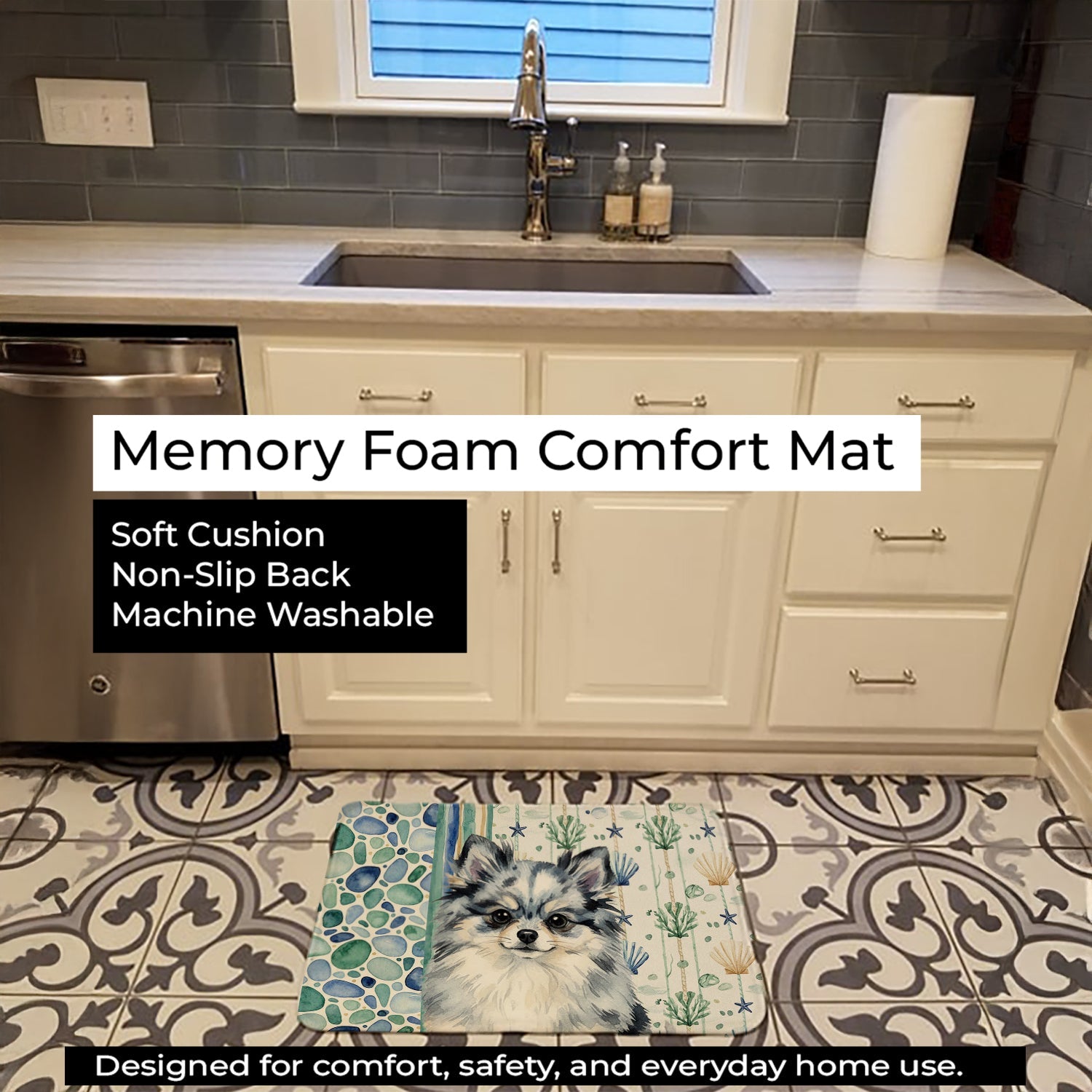 Shown here is the Blue Merle Pomeranian Coastal Sea Glass Memory Foam Kitchen Mat from Caroline's Treasures featuring artwork of a Pomeranian in a Everyday design. The detailed illustration and vibrant colors make it a standout accent that celebrates both seasonal style and love for the subject. This image features a calming coastal watercolor pattern with soft seashells, seaweed, starfish, and pebble-inspired accents arranged in a repeating design. The soothing palette of blues, greens, and sandy neutrals creates a relaxed, beach-inspired look that adds a fresh and tranquil feel to any space. Everyday décor celebrates personal style and the small moments that make a house feel like home. Thoughtful designs add warmth and personality that can be enjoyed year-round. Transform your floor into a work of art with Caroline's Treasures' Memory Foam Mat. This mat offers not only a stunning visual appeal but also a luxurious, plush feel that's incredibly comfortable to the touch. It's a versatile, machine-washable mat designed for both bath and kitchen use, ensuring you experience the best in comfort and convenience. Care Instructions: Maintaining this memory foam mat is a breeze. Simply follow the care instructions on the product tag. It's recommended to wash in cold water and dry on a low-temperature setting in the dryer. This ensures the mat retains its quality and longevity, allowing you to enjoy its beauty and comfort for a long time. Caroline's Treasures' Memory Foam Mat Machine Washable is the perfect blend of artistry, comfort, and practicality, making it a standout addition to any space. Upgrade your home decor with this versatile and stylish mat today. Pomeranians are small companion dogs known for their fluffy coats and lively personality. This breed is cherished for its confidence, intelligence, and affectionate nature. Makes a heartfelt gift for: Pomeranian owners, Dogs lovers, Everyday gifts, pet parents, friends who adore their Pomeranian, or anyone celebrating Dogs.