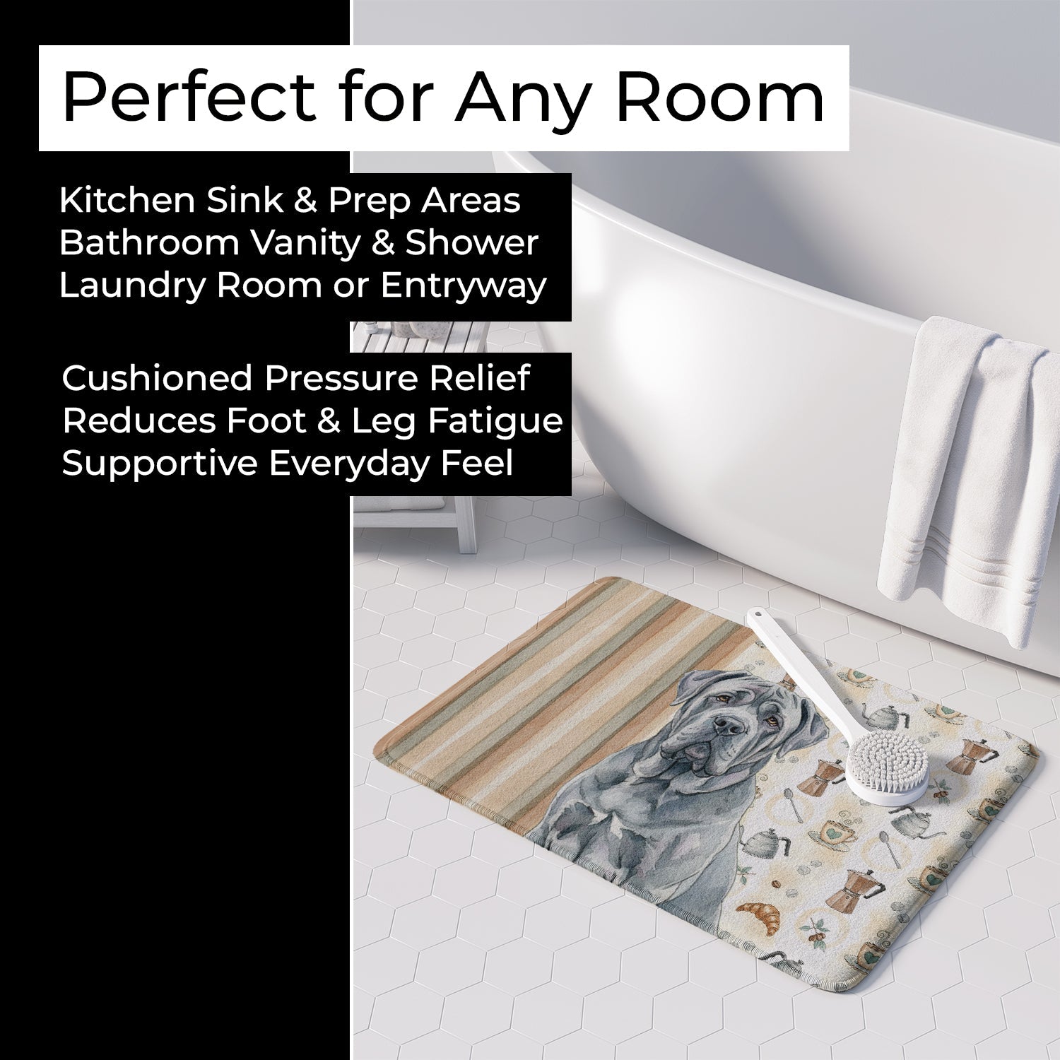 Shown here is the Blue Neapolitan Mastiff Coffee Bar Memory Foam Kitchen Mat from Caroline's Treasures featuring artwork of a Neapolitan Mastiff in a Everyday design. The detailed illustration and vibrant colors make it a standout accent that celebrates both seasonal style and love for the subject. This image features a cozy watercolor coffee-themed pattern with illustrated mugs, moka pots, kettles, croissants, coffee beans, and sugar cubes arranged in a repeating design. Soft neutral tones with warm browns, creams, and subtle sage accents create an inviting, café-inspired look that feels comforting and relaxed. Everyday décor celebrates personal style and the small moments that make a house feel like home. Thoughtful designs add warmth and personality that can be enjoyed year-round. Transform your floor into a work of art with Caroline's Treasures' Memory Foam Mat. This mat offers not only a stunning visual appeal but also a luxurious, plush feel that's incredibly comfortable to the touch. It's a versatile, machine-washable mat designed for both bath and kitchen use, ensuring you experience the best in comfort and convenience. Care Instructions: Maintaining this memory foam mat is a breeze. Simply follow the care instructions on the product tag. It's recommended to wash in cold water and dry on a low-temperature setting in the dryer. This ensures the mat retains its quality and longevity, allowing you to enjoy its beauty and comfort for a long time. Caroline's Treasures' Memory Foam Mat Machine Washable is the perfect blend of artistry, comfort, and practicality, making it a standout addition to any space. Upgrade your home decor with this versatile and stylish mat today. Neapolitan Mastiffs are massive guardian dogs known for their distinctive appearance and protective nature. This ancient breed is admired for its loyalty, calm demeanor, and strong family bonds. Makes a heartfelt gift for: Neapolitan Mastiff owners, Dogs lovers, Everyday gifts, pet parents, friends who adore their Neapolitan Mastiff, or anyone celebrating Dogs.