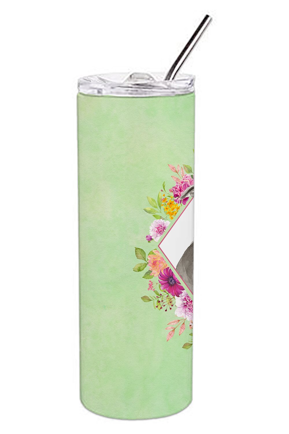 Blue Pit Bull Terrier Green Flowers Double Walled Stainless Steel 20 oz Skinny Tumbler CK4429TBL20