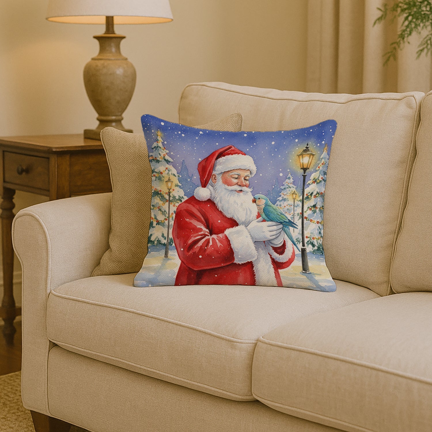 Blue Quaker with Santa Claus Throw Pillow