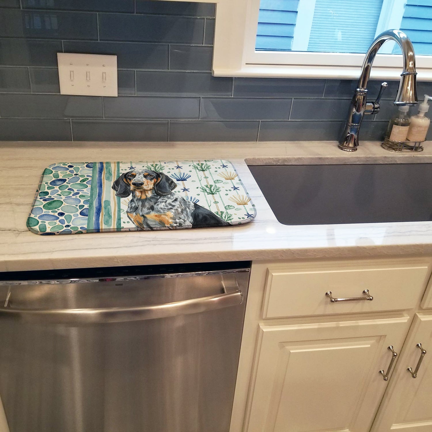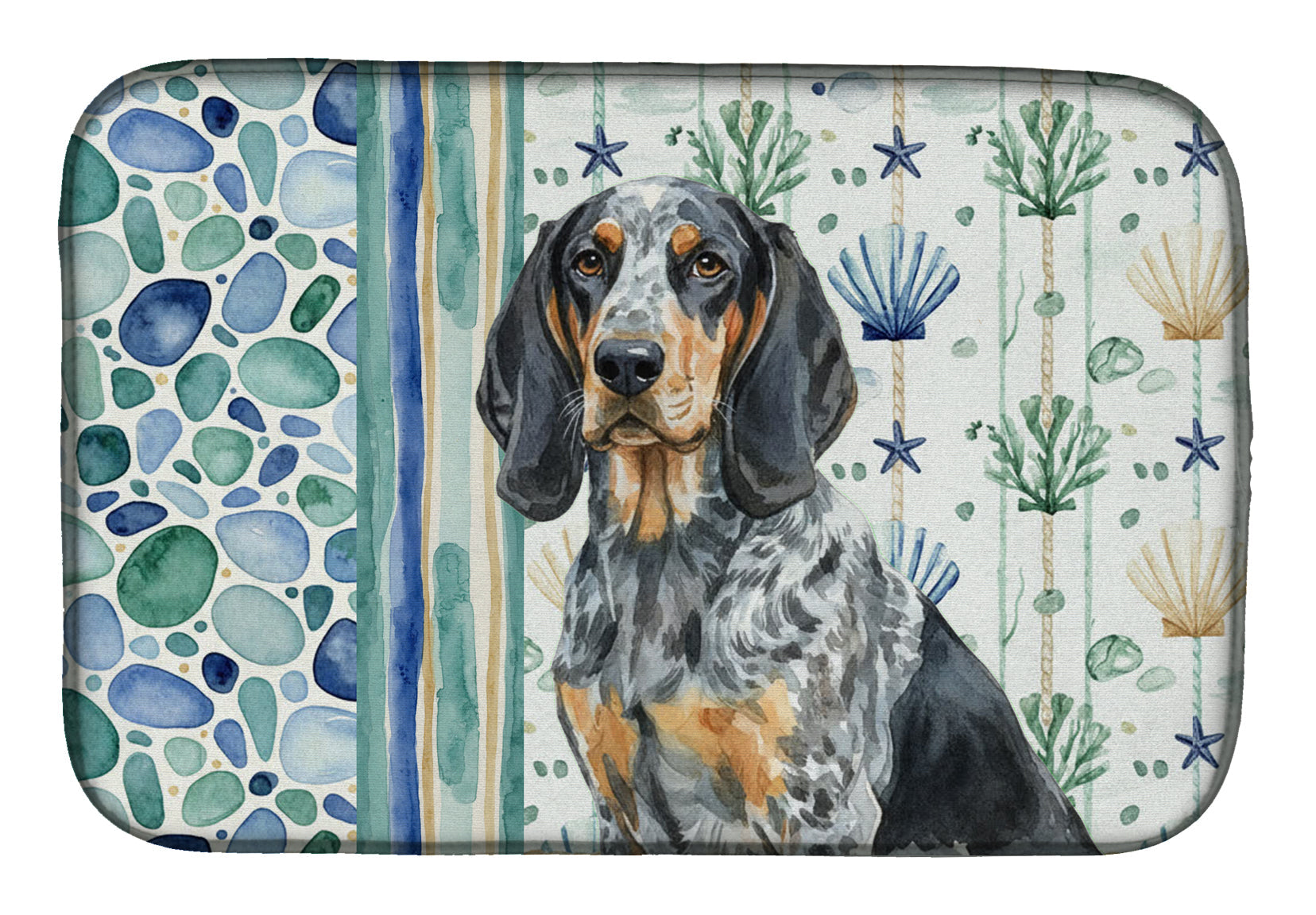 Shown here is the Bluetick Coonhound Coastal Sea Glass Dish Drying Mat from Caroline's Treasures featuring artwork of a Bluetick Coonhound in a Everyday design. The detailed illustration and vibrant colors make it a standout accent that celebrates both seasonal style and love for the subject. This image features a calming coastal watercolor pattern with soft seashells, seaweed, starfish, and pebble-inspired accents arranged in a repeating design. The soothing palette of blues, greens, and sandy neutrals creates a relaxed, beach-inspired look that adds a fresh and tranquil feel to any space. Everyday décor celebrates personal style and the small moments that make a house feel like home. Thoughtful designs add warmth and personality that can be enjoyed year-round. Say goodbye to messy countertops and soggy dish towels with our innovative dish drying mat. Our high-quality dish drying pad is designed to keep your countertops dry while offering a stylish and efficient solution. Whether you're air drying dishes, glasses, stemware, silverware, pots, pans, bottles, or even fruits and vegetables, our dish mat is the perfect choice. The 14 inches x 21 inches size fits most counters and dish drying racks, and the non-slip design ensures stability. Made with water-absorbent polyester and a polyurethane foam insert, our dish drying mat is not only functional but also durable. It's machine washable and printed in the USA for long-lasting use. The beautiful artwork adds flair to your kitchen decor, making it a perfect housewarming gift or present for any occasion. Upgrade your kitchen experience with our absorbent and versatile dish drying mat. Perfect for: Kitchen counters and sinks, everyday dish drying and countertop protection, Dogs-themed homes, or year-round use for Bluetick Coonhound lovers. Bluetick Coonhounds are scent hounds known for their determination, endurance, and distinctive coat pattern. This breed is appreciated for its strong tracking ability and friendly nature. Makes a heartfelt gift for: Bluetick Coonhound owners, Dogs lovers, Everyday gifts, pet parents, friends who adore their Bluetick Coonhound, or anyone celebrating Dogs.