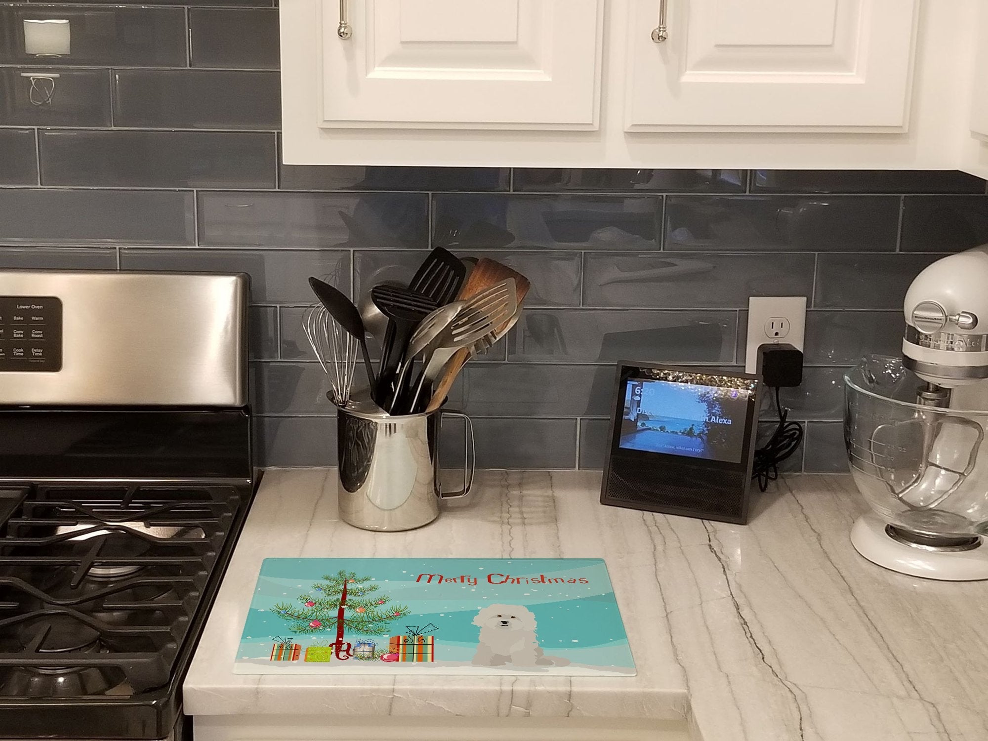 Decorate your space with our Christmas Bolognese artwork on a Cutting Board. Introduce your kitchen to the vibrant, large Decorative Glass Cutting Board from Caroline's Treasures. Crafted from resilient tempered glass, this board is not only a utilitarian necessity but also a colorful art piece. With its generous dimensions of 15 inches in height and 12 inches in length, it offers ample space for all your cutting needs. Every piece showcases captivating artwork from distinguished artists, bringing an aesthetic edge to your kitchen. Beyond its attractive design, this cutting board ensures your countertop stays pristine and unscathed, owing to its heat-resistant properties. Engineered with user convenience in mind, it features non-skid feet for stability, and rounded corners for additional safety. Its robust construction renders it virtually unbreakable, guaranteeing longevity. The board comes with protective feet bumpers, maintaining its position during use. This product is recommended to be hand washed only. Proudly printed and assembled in the United States, this cutting board exemplifies superior craftsmanship. With Caroline's Treasures' Decorative Glass Cutting Board, you're investing in a blend of functionality and artistic flair.