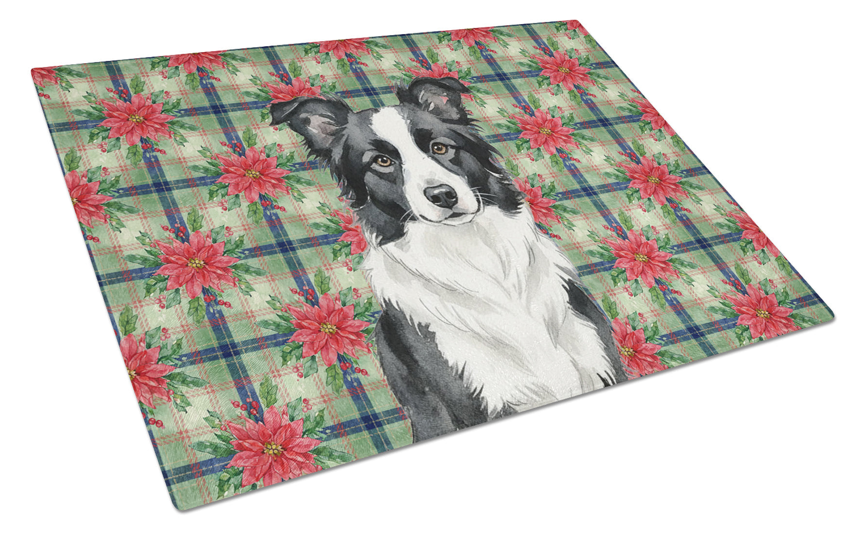 Border Collie Christmas PoinsettIas Glass Cutting Board