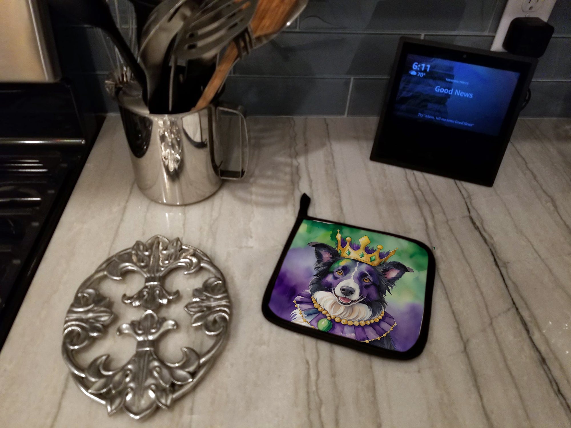 Pair of Pot Holders featuring breed specific Border Collie artwork. Celebrate Mardi Gras with this Mardi Gras Pair of Pot Holders. A Pair of Pot Holders to match your kitchen decor. Made in the USA these are thick and functional. Full color artwork decorates the front polyester fabric of the hot pad and accented by a black trim. Use these at as a trivet for your Thanksgiving or Christmas tablescape. Filled with insulated fabric and quilted for durability. These colorful pot holders will make a great gift for your favorite home cook or executive chef. Each pot holder measures approximately 7 1/2 inches by 7 1/2 inches. A hanging tab is included.