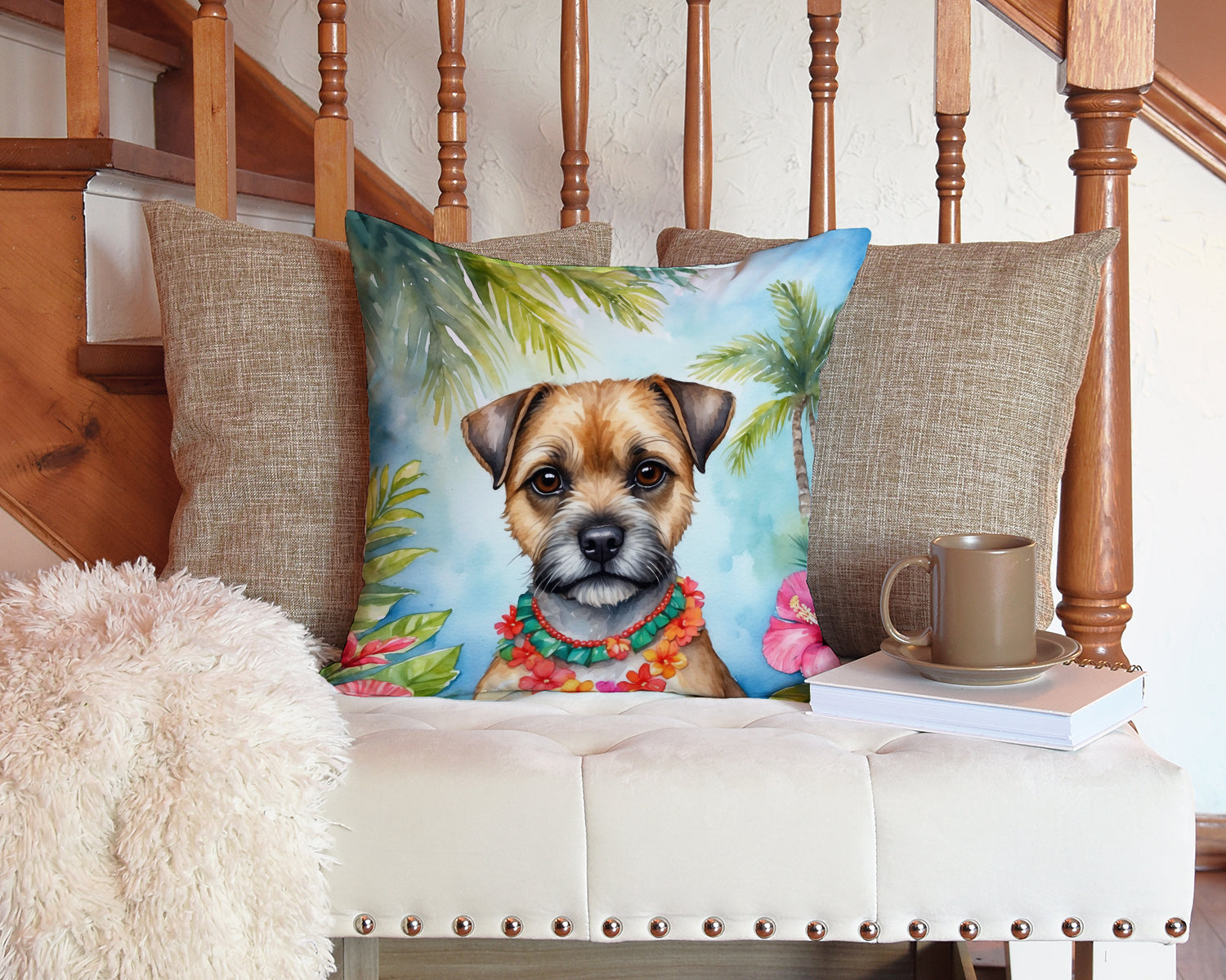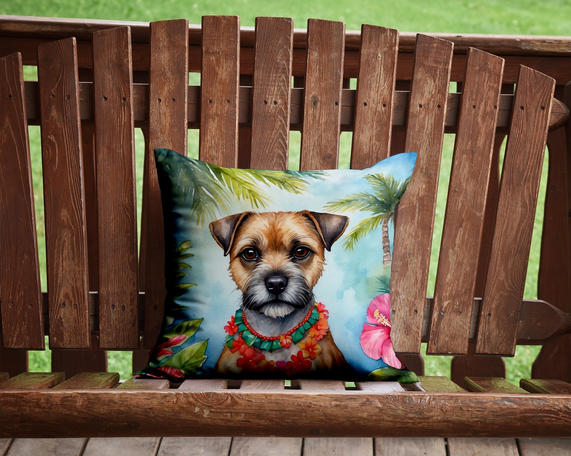 Decorate your space with our Border Terrier artwork on a Pillow. Bring a bit of Summer into your home with a Summer Pillow. Add a touch of vibrancy and comfort to your outdoor seating with Caroline's Treasures Fabric Decorative Pillow. Measuring approximately 14 inches by 14 inches, this outdoor pillow is crafted to elevate the appeal of your patio furniture, infusing it with vivid color and artistic flair. The pillow includes a 100% Polyester Fabric sham filled with a quality pillow form to provide superior comfort. Innovatively made from our brand new material, specifically woven for its water resistance, this pillow is designed for durability. The soft canvas fabric offers versatility in use, fit for your indoor couch or your outdoor patio, porch, or veranda. The fabric is dyed with colorfast dyes built for resilience against weather conditions, ensuring the pillow retains its beauty over time. Constructed by sewing three fabric pieces to create a sham, the polyester insert is then nestled inside to form the pillow, resulting in an overstuffed pillow that maintains its shape. Both the sham and the pillow insert are proudly made in the United States. As the pillows are handcrafted, there may be minor variations in size, further enhancing their unique charm. Experience comfort in style with Caroline's Treasures Fabric Decorative Pillow.