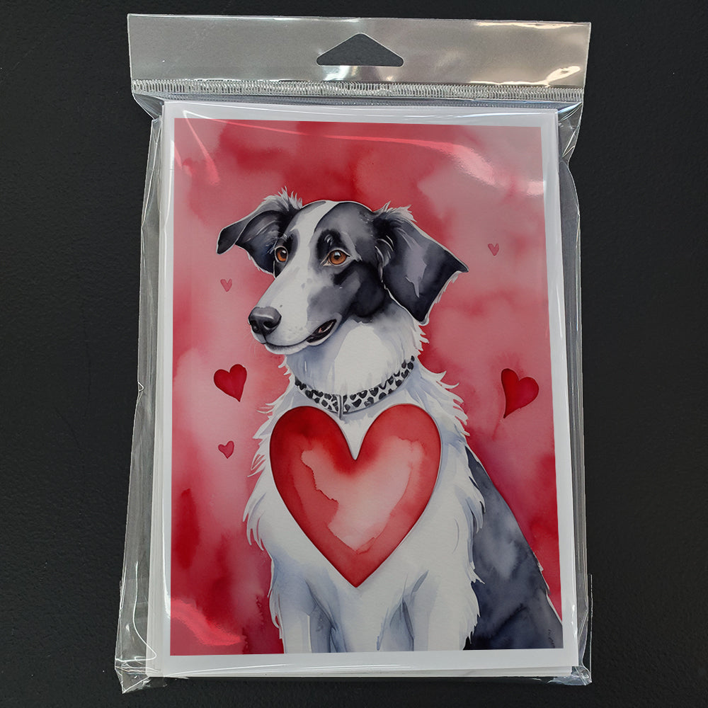 Decorate your space with our Valentine's Day Borzoi Russian Wolfhound artwork on a . Celebrate special moments with Caroline's Treasures Printed Greeting Card Pack. This pack includes eight beautifully folded 5x7 cards, accompanied by eight matching white envelopes. With blank interiors, these cards provide ample space for your personalized messages and heartfelt holiday greetings. Each card features captivating full-color artwork, meticulously printed in our facility on high-quality 80 lb cover stock or 216 GSM. The super smooth finish of the white cards enhances the visual impact of the artwork, creating a truly stunning presentation. Designed by our talented in-house artists or licensed artists, the artwork on these cards showcases their creativity and attention to detail. From vibrant illustrations to captivating designs, each card tells its own unique story. Whether it's for birthdays, anniversaries, holidays, or any special occasion, Caroline's Treasures Greeting Card Pack is the perfect way to convey your heartfelt sentiments. Share joy, love, and warm wishes with these exquisite cards and make every moment unforgettable.