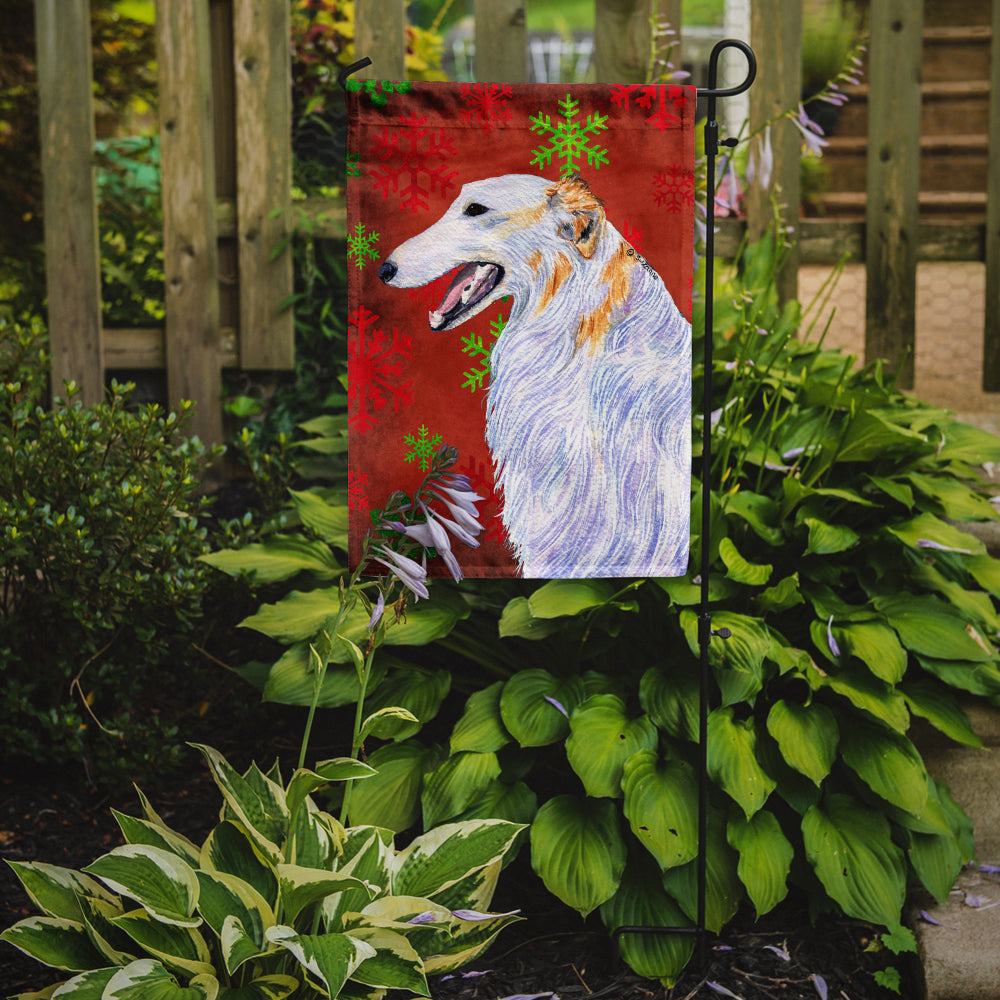 Decorate your space with our Christmas Borzoi/Russian Wolfhound artwork on a Garden Flag. Enhance the beauty of your garden, patio, or yard with Caroline's Treasures Decorative Garden Flag, proudly made in the USA. Crafted from two pieces of thick, double-sided polyester fabric, this 2-ply garden flag is designed to withstand various weather conditions, making it water-resistant and weatherproof. Featuring correctly readable words on both sides, this garden flag offers a delightful visual experience from any angle. With its heavier weight, it stands out among other garden flags, ensuring stability and durability even in wind, rain, and snow. Measuring approximately 11 1/4 inches by 15 1/2 inches, this flag allows you to personalize your outdoor decor. It comes with a 1 1/2-inch sleeve sewn in, allowing easy attachment to any standard garden flag stand or garden size porch hanger (sold separately). Make a statement in your outdoor space with Caroline's Treasures Decorative Garden Flag, a vibrant and high-quality flag that adds color and personality to your surroundings. Proudly made in the USA, it's a symbol of quality craftsmanship and attention to detail.
