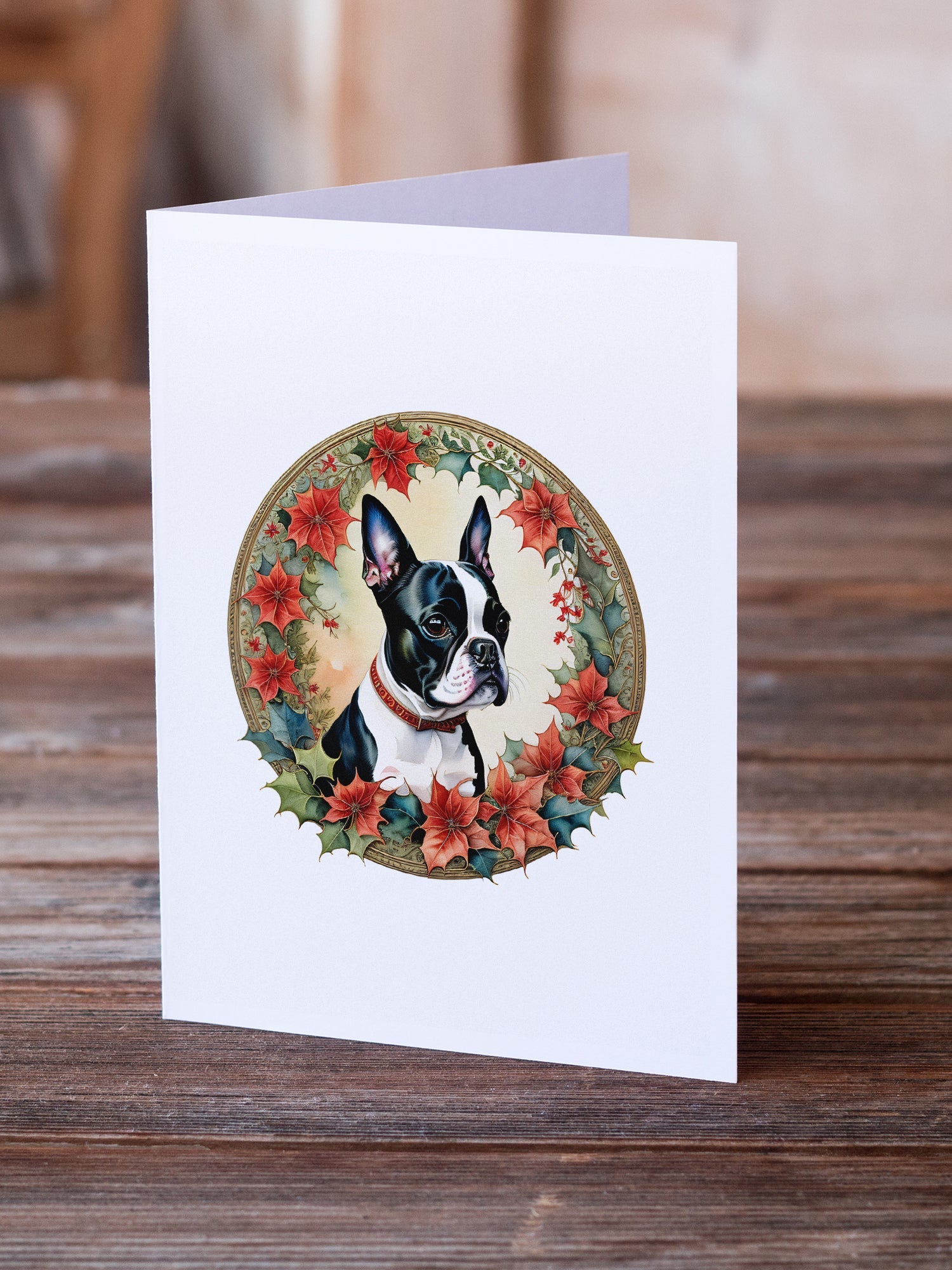 Decorate your space with our Christmas Boston Terrier artwork on a . Bring a bit of Winter into your home with a Winter . Celebrate special moments with Caroline's Treasures Printed Greeting Card Pack. This pack includes eight beautifully folded 5x7 cards, accompanied by eight matching white envelopes. With blank interiors, these cards provide ample space for your personalized messages and heartfelt holiday greetings. Each card features captivating full-color artwork, meticulously printed in our facility on high-quality 80 lb cover stock or 216 GSM. The super smooth finish of the white cards enhances the visual impact of the artwork, creating a truly stunning presentation. Designed by our talented in-house artists or licensed artists, the artwork on these cards showcases their creativity and attention to detail. From vibrant illustrations to captivating designs, each card tells its own unique story. Whether it's for birthdays, anniversaries, holidays, or any special occasion, Caroline's Treasures Greeting Card Pack is the perfect way to convey your heartfelt sentiments. Share joy, love, and warm wishes with these exquisite cards and make every moment unforgettable.