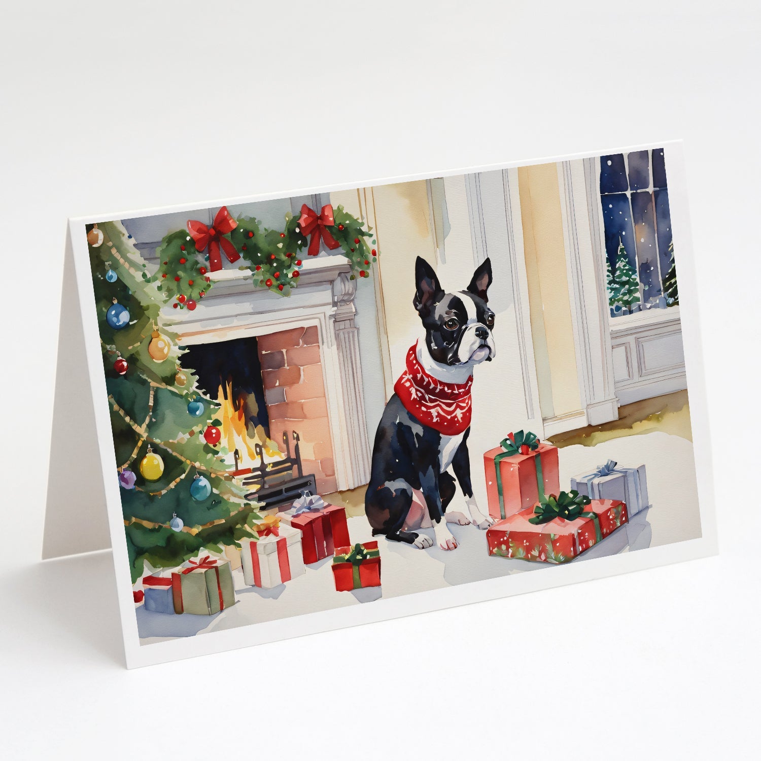Decorate your space with our Christmas Boston Terrier artwork on a . Celebrate special moments with Caroline's Treasures Printed Greeting Card Pack. This pack includes eight beautifully folded 5x7 cards, accompanied by eight matching white envelopes. With blank interiors, these cards provide ample space for your personalized messages and heartfelt holiday greetings. Each card features captivating full-color artwork, meticulously printed in our facility on high-quality 80 lb cover stock or 216 GSM. The super smooth finish of the white cards enhances the visual impact of the artwork, creating a truly stunning presentation. Designed by our talented in-house artists or licensed artists, the artwork on these cards showcases their creativity and attention to detail. From vibrant illustrations to captivating designs, each card tells its own unique story. Whether it's for birthdays, anniversaries, holidays, or any special occasion, Caroline's Treasures Greeting Card Pack is the perfect way to convey your heartfelt sentiments. Share joy, love, and warm wishes with these exquisite cards and make every moment unforgettable.