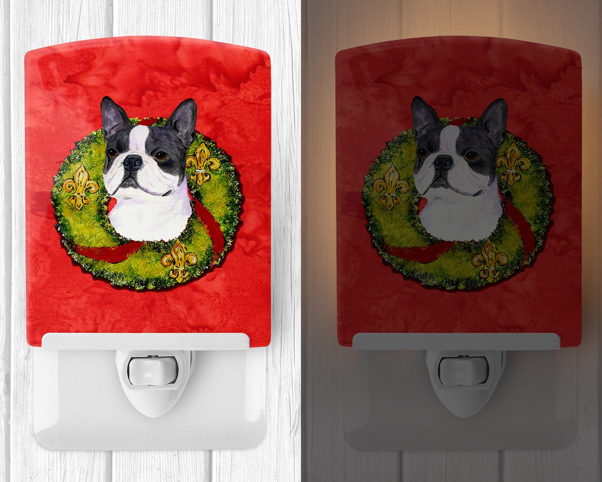 Boston Terrier Cristmas Wreath Ceramic Night Light SS4203CNL