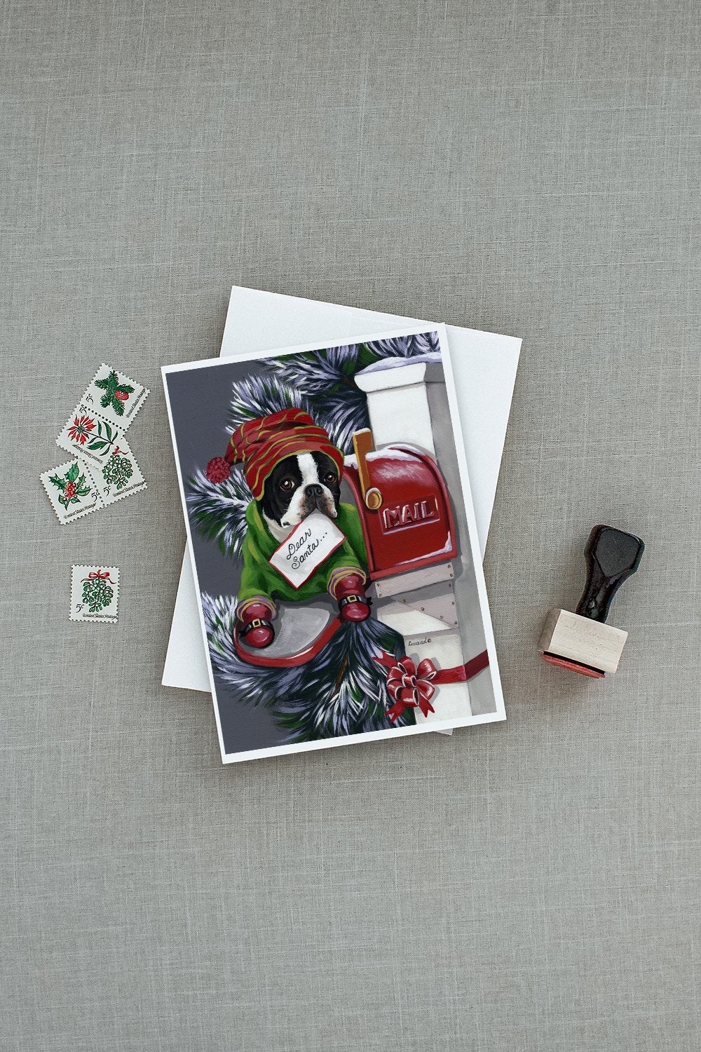 Decorate your space with our Christmas Boston Terrier artwork on a . Celebrate special moments with Caroline's Treasures Printed Greeting Card Pack. This pack includes eight beautifully folded 5x7 cards, accompanied by eight matching white envelopes. With blank interiors, these cards provide ample space for your personalized messages and heartfelt holiday greetings. Each card features captivating full-color artwork, meticulously printed in our facility on high-quality 80 lb cover stock or 216 GSM. The super smooth finish of the white cards enhances the visual impact of the artwork, creating a truly stunning presentation. Designed by our talented in-house artists or licensed artists, the artwork on these cards showcases their creativity and attention to detail. From vibrant illustrations to captivating designs, each card tells its own unique story. Whether it's for birthdays, anniversaries, holidays, or any special occasion, Caroline's Treasures Greeting Card Pack is the perfect way to convey your heartfelt sentiments. Share joy, love, and warm wishes with these exquisite cards and make every moment unforgettable.