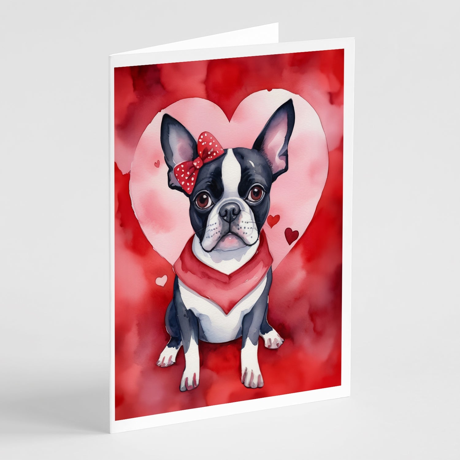 Decorate your space with our Valentine's Day Boston Terrier artwork on a . Celebrate special moments with Caroline's Treasures Printed Greeting Card Pack. This pack includes eight beautifully folded 5x7 cards, accompanied by eight matching white envelopes. With blank interiors, these cards provide ample space for your personalized messages and heartfelt holiday greetings. Each card features captivating full-color artwork, meticulously printed in our facility on high-quality 80 lb cover stock or 216 GSM. The super smooth finish of the white cards enhances the visual impact of the artwork, creating a truly stunning presentation. Designed by our talented in-house artists or licensed artists, the artwork on these cards showcases their creativity and attention to detail. From vibrant illustrations to captivating designs, each card tells its own unique story. Whether it's for birthdays, anniversaries, holidays, or any special occasion, Caroline's Treasures Greeting Card Pack is the perfect way to convey your heartfelt sentiments. Share joy, love, and warm wishes with these exquisite cards and make every moment unforgettable.