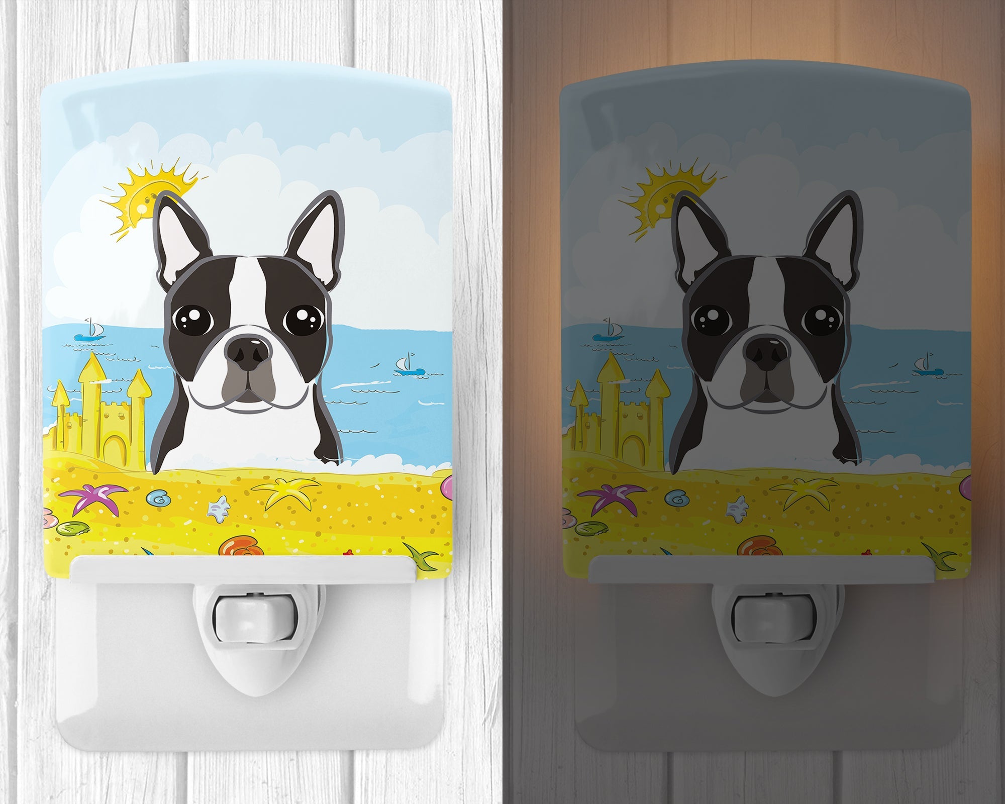Decorate your space with our Boston Terrier artwork on a Night Light. Bring a bit of Summer into your home with a Summer Night Light. Introduce a splash of artistic flair and subtle illumination to your space with the Decorative Ceramic Night Light from Caroline's Treasures. Perfect for any room, this night light seamlessly blends functionality with an aesthetic appeal, offering a stylish solution to brighten up dark corners of your home or office. Boasting a six-inch high by four-inch wide ceramic tile at the front, it showcases vivid, full-color artwork from distinguished artists, transforming a simple utility into a vibrant art piece. The artwork is securely encased in a robust metal holder, ensuring durability and longevity. Two screws are provided to firmly affix the tile into the holder. The holder extends three inches deep, housing an included bulb that emits a soft, welcoming glow. This product meets all safety standards, as evidenced by its UL approval. Proudly made in the United States from imported components, this Decorative Ceramic Night Light is not just a functional device; it's a statement piece that enhances the ambiance of your surroundings.