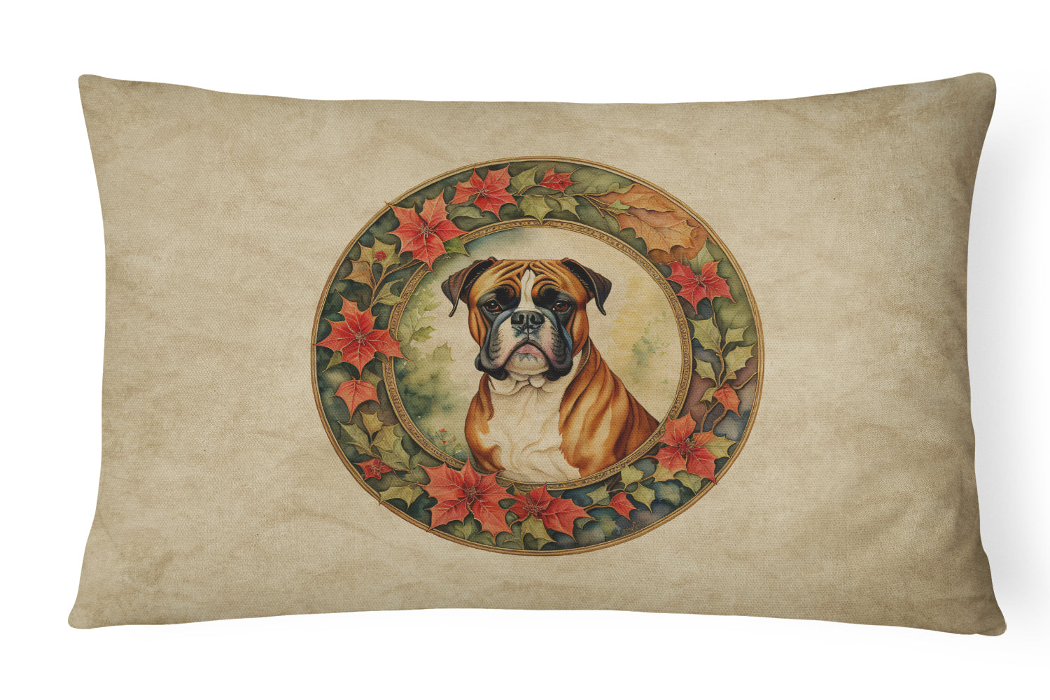 Decorate your space with our Christmas Boxer artwork on a Pillow. Bring a bit of Winter into your home with a Winter Pillow. Embrace the fusion of comfort and style with Caroline's Treasures Fabric Decorative Pillow. This 12x16 inch outdoor pillow is designed to complement your patio furniture, adding a splash of color and artistry to your outdoor setting. Constructed with a 100% Polyester Fabric pillow sham filled with a plush pillow form, this cushion is as comfortable as it is durable. Our outdoor pillow utilizes a novel fabric, meticulously woven for enhanced water resistance. This soft canvas material is equally suited for your indoor couch as well as outdoor settings such as the patio, porch, or veranda. To ensure enduring vibrance, we employ colorfast dyes resistant to fading even when subjected to weather elements. The making of this pillow involves the delicate sewing together of three fabric pieces to create a sham, into which a polyester insert is carefully placed. The result is an overstuffed pillow that tenaciously holds its shape. With both the sham and the pillow insert crafted in the United States, these handmade pillows are a testament to superior local craftsmanship. Note that as these pillows are handmade, sizes may slightly vary, enhancing their unique appeal. Enjoy comfort in style with Caroline's Treasures Fabric Decorative Pillow.