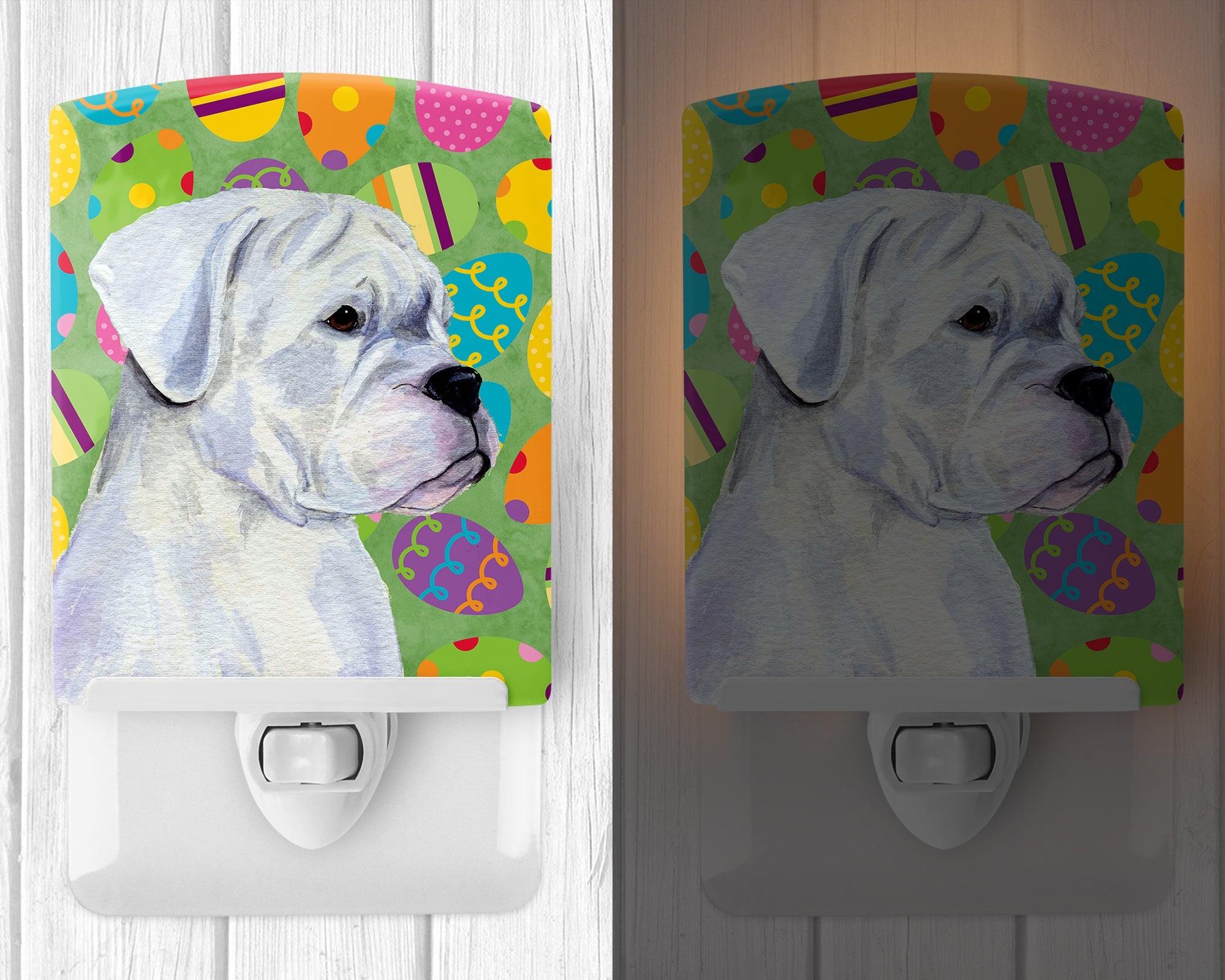 Decorate your space with our Easter Boxer artwork on a Night Light. Introduce a splash of artistic flair and subtle illumination to your space with the Decorative Ceramic Night Light from Caroline's Treasures. Perfect for any room, this night light seamlessly blends functionality with an aesthetic appeal, offering a stylish solution to brighten up dark corners of your home or office. Boasting a six-inch high by four-inch wide ceramic tile at the front, it showcases vivid, full-color artwork from distinguished artists, transforming a simple utility into a vibrant art piece. The artwork is securely encased in a robust metal holder, ensuring durability and longevity. Two screws are provided to firmly affix the tile into the holder. The holder extends three inches deep, housing an included bulb that emits a soft, welcoming glow. This product meets all safety standards, as evidenced by its UL approval. Proudly made in the United States from imported components, this Decorative Ceramic Night Light is not just a functional device; it's a statement piece that enhances the ambiance of your surroundings.