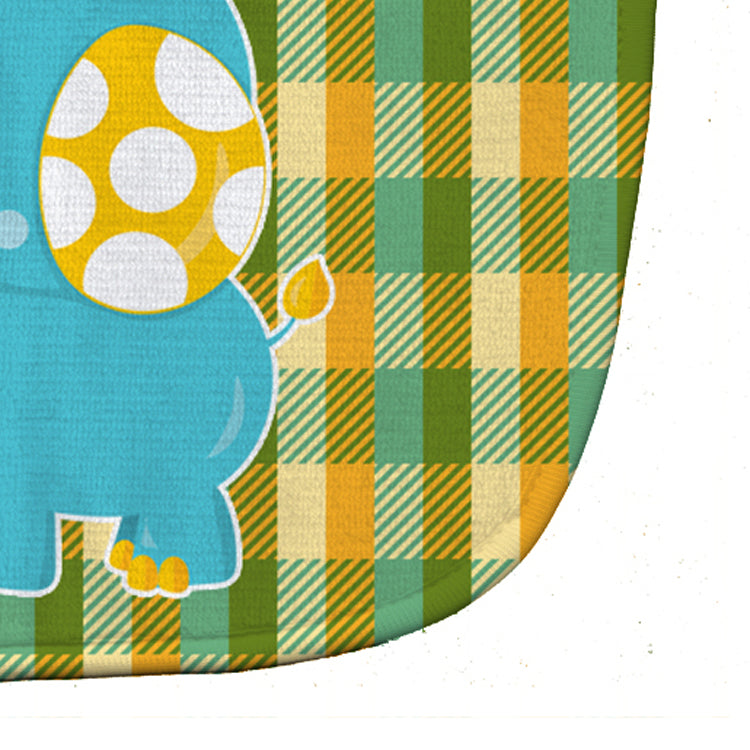 Decorate your space with our Elephant artwork on a Baby Bib. Cute and Functional. Dyed plush fabric baby bib with Velcro closure. Made of ultra-smooth micro-mink polyester that reverses to 100% cotton terry loops. Measures 10 inches x 13 inches, 0.8 oz. per piece. Edges are finished with binding. Machine washable and dry on low heat. Fade resistant and stain resistant. Top fabric gets even softer after the first wash.