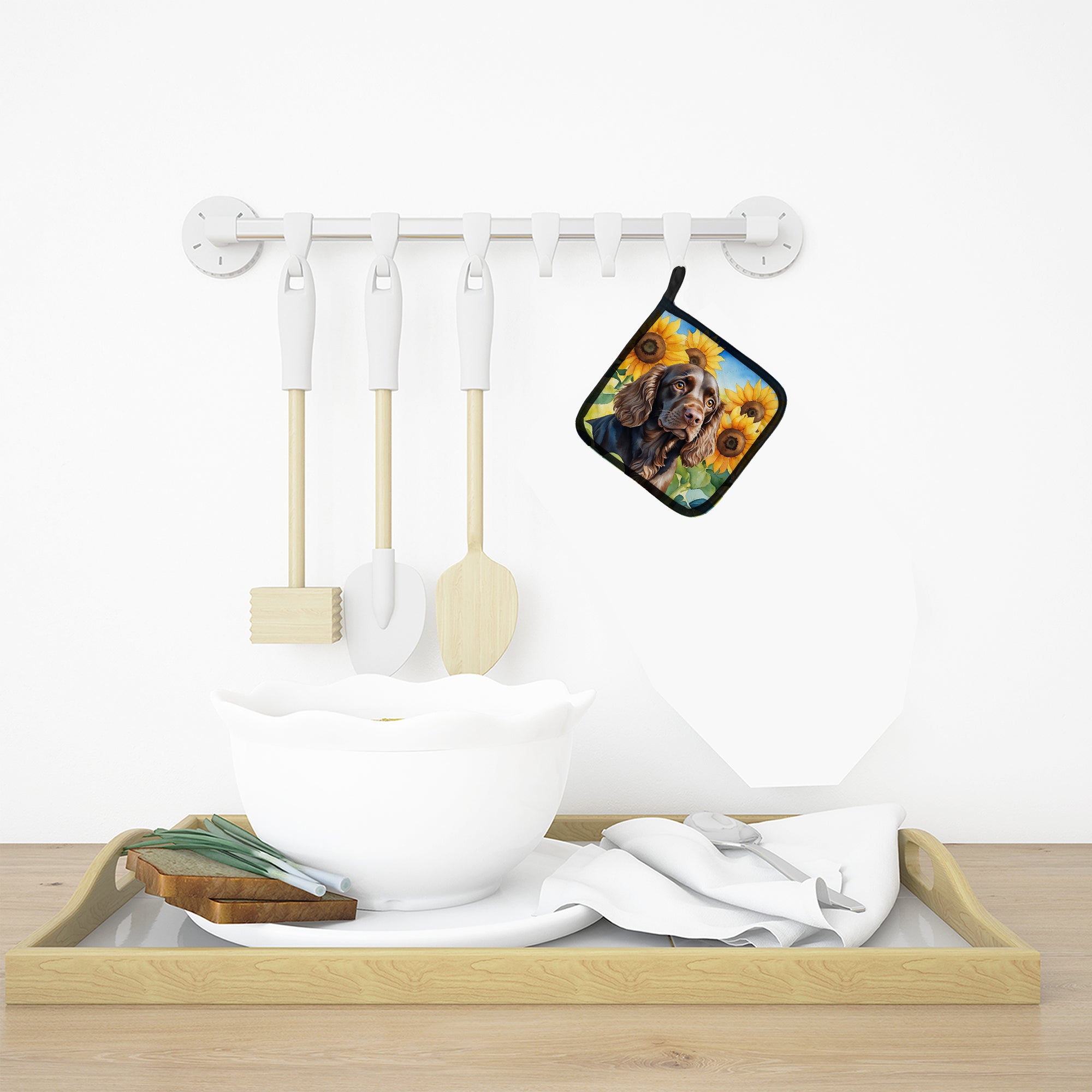 Decorate your space with our Boykin Spaniel artwork on a Pair of Pot Holders. Bring a bit of Summer into your home with a Summer Pair of Pot Holders. A Pair of Pot Holders to match your kitchen decor. Made in the USA these are thick and functional. Full color artwork decorates the front polyester fabric of the hot pad and accented by a black trim. Use these at as a trivet for your Thanksgiving or Christmas tablescape. Filled with insulated fabric and quilted for durability. These colorful pot holders will make a great gift for your favorite home cook or executive chef. Each pot holder measures approximately 7 1/2 inches by 7 1/2 inches. A hanging tab is included.