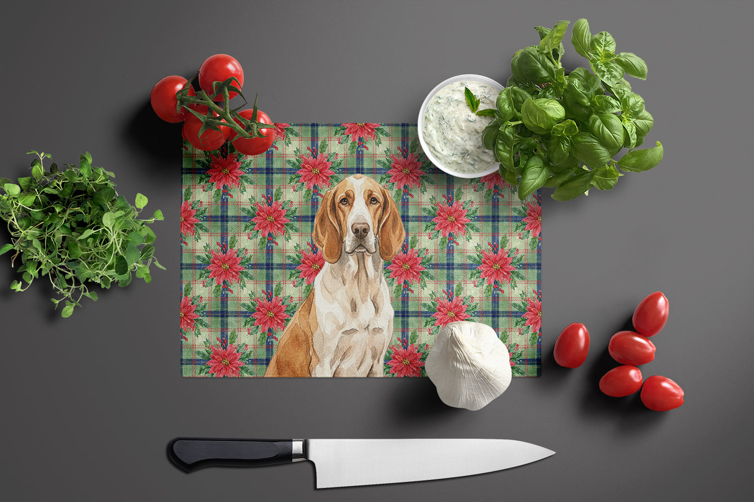 Glass Cutting Board featuring breed specific Bracco Italiano artwork. Celebrate Christmas with this Christmas Cutting Board. Introduce your kitchen to the vibrant, large Decorative Glass Cutting Board from Caroline's Treasures. Crafted from resilient tempered glass, this board is not only a utilitarian necessity but also a colorful art piece. With its generous dimensions of 15 inches in height and 11 inches in length, it offers ample space for all your cutting needs. Every piece showcases captivating artwork from distinguished artists, bringing an aesthetic edge to your kitchen. Beyond its attractive design, this cutting board ensures your countertop stays pristine and unscathed, owing to its heat-resistant properties. Engineered with user convenience in mind, it features non-skid feet for stability, and rounded corners for additional safety. Its robust construction renders it virtually unbreakable, guaranteeing longevity. The board comes with protective feet bumpers, maintaining its position during use. This product is recommended to be hand washed only. Proudly printed and assembled in the United States, this cutting board exemplifies superior craftsmanship. With Caroline's Treasures' Decorative Glass Cutting Board, you're investing in a blend of functionality and artistic flair.