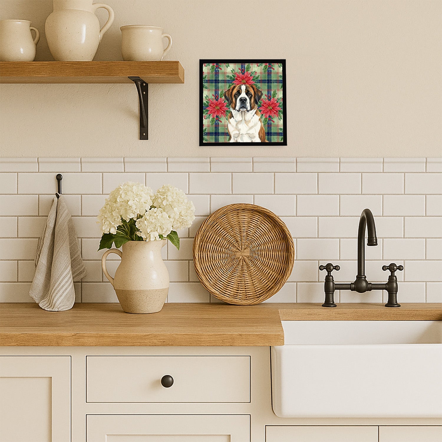 Framed Metal Print featuring breed specific Saint Bernard artwork. Celebrate Christmas with this Christmas Framed Metal Print. Looking for wall art that�s stylish, safe, and made to last? Our 8x8 Framed Metal Prints are designed with modern living in mind. Each piece features original artwork printed on durable aluminum, set in a sleek frame that measures 3/4 inch deep for a clean, contemporary finish. Unlike glass prints, these are lightweight, shatter-free, and family-safe. Perfect for kitchens, bathrooms, or covered porches where traditional d�cor might not hold up. The built-in sawtooth hanger molded into the back makes it easy to hang right out of the box�just use your own nails or screws. Cleaning is simple too: a quick wipe with a damp cloth and mild soap keeps your artwork looking vibrant. Proudly made in Alabama, every print supports our community of artists while adding personality and charm to your home.