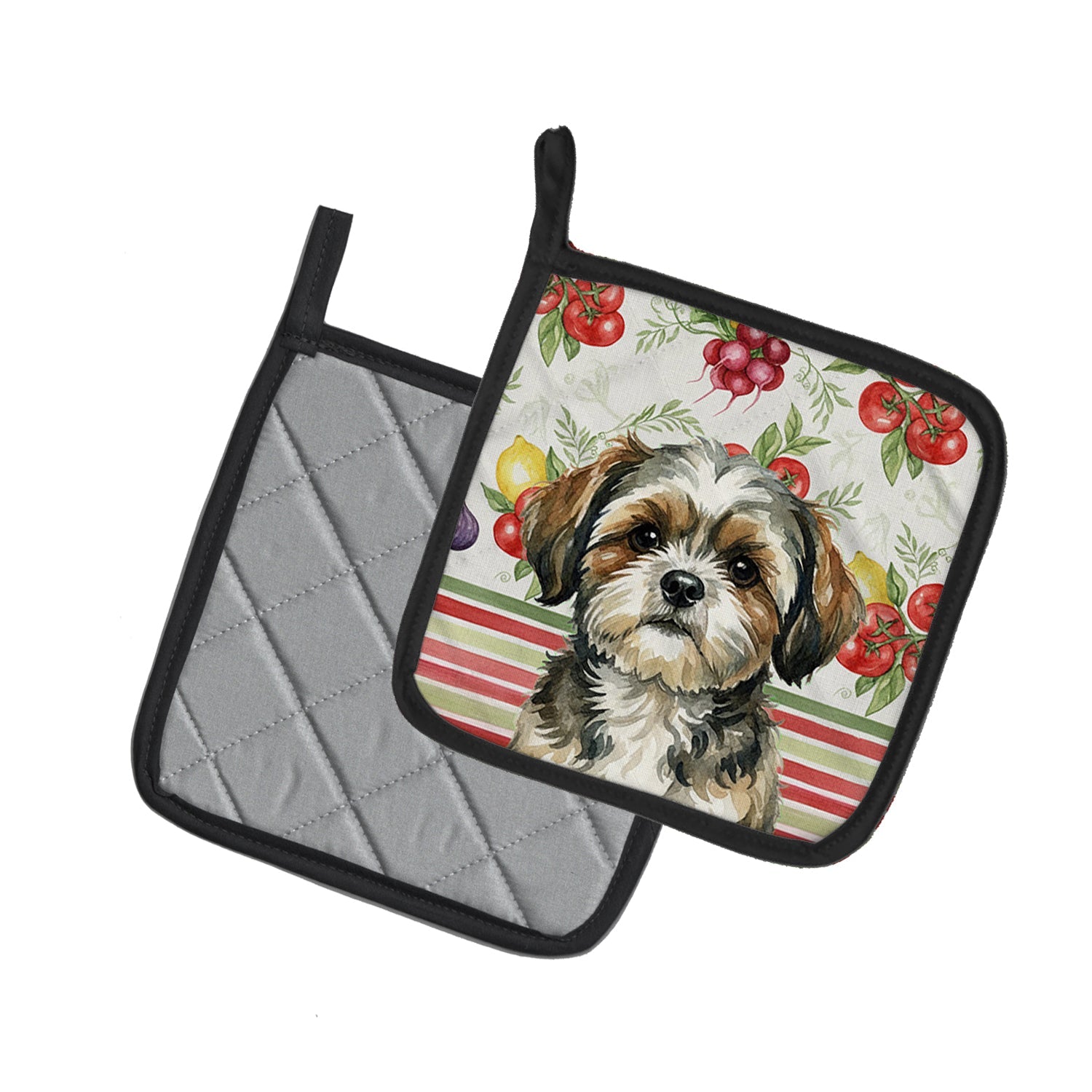 Brindle Shih Tzu Vegetables Pair of Pot Holders