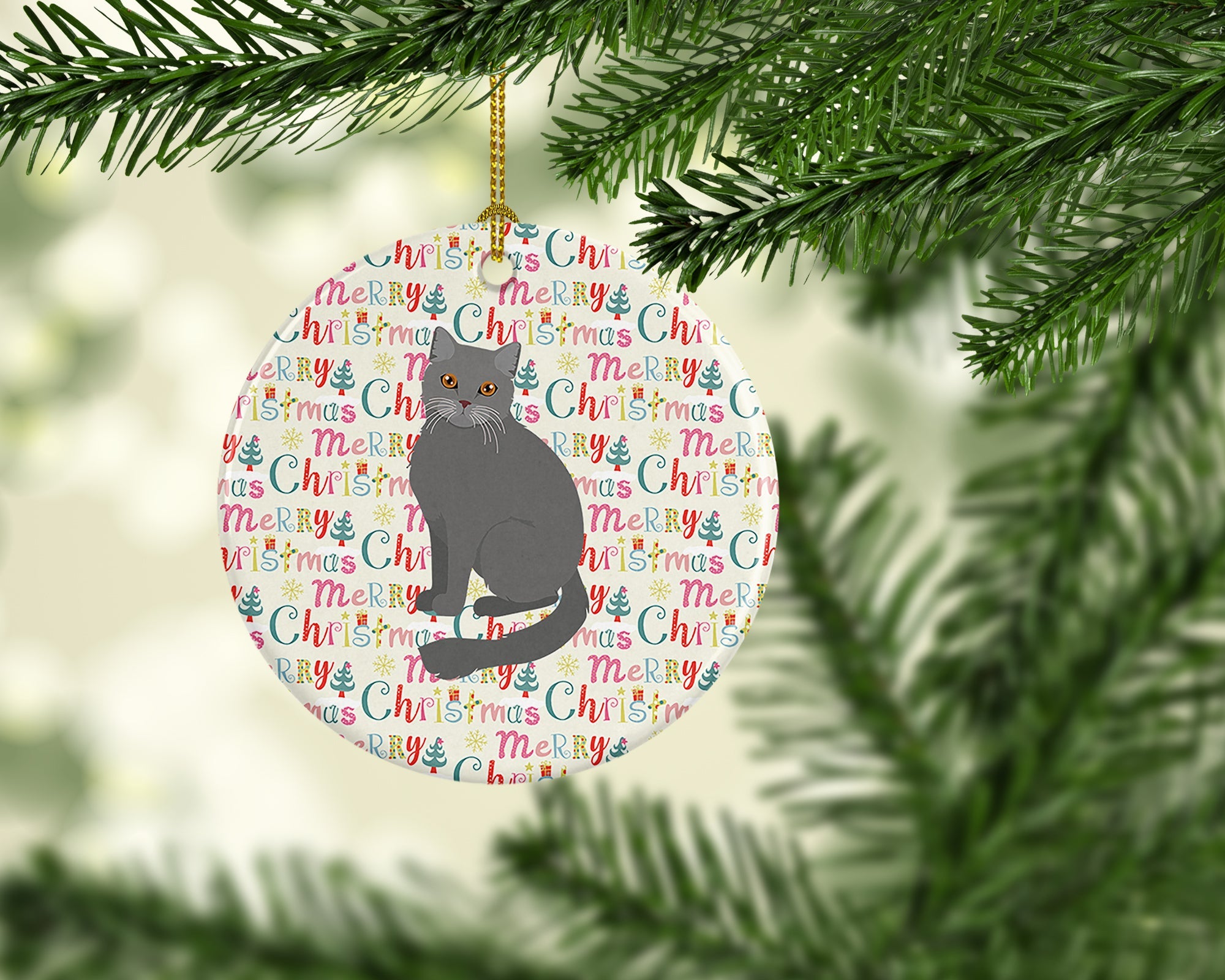 Decorate your space with our Christmas British Semi Longhair Cat artwork on a Ornament. Add a touch of personalized charm to your Christmas tree this holiday season with our Ceramic Ornament. Measuring 2.8125 inches in diameter, this round porcelain ornament beautifully reflects your festive lights, enhancing your holiday decor. The gloss surface sets off the vibrant, full-color artwork contributed by one of our talented artists, bringing a pop of color and joy to your tree. This Ceramic Ornament doesn't stop at being merely decorative. The white back is designed for personalization. Write a heartfelt message, mark a special year, or inscribe a date with a paint pen or a permanent marker to create a treasured memento. Please ensure you allow any personalization to dry thoroughly before handling to maintain the pristine finish. Included with the ornament is a delicate gold cord for easy hanging. Made in the USA, this Ceramic Ornament makes an exceptional gift for a pet sitter, teacher, family member, or anyone you wish to share a little Christmas magic with. With its blend of style, charm, and personal touch, it's a meaningful addition to any Christmas tree.