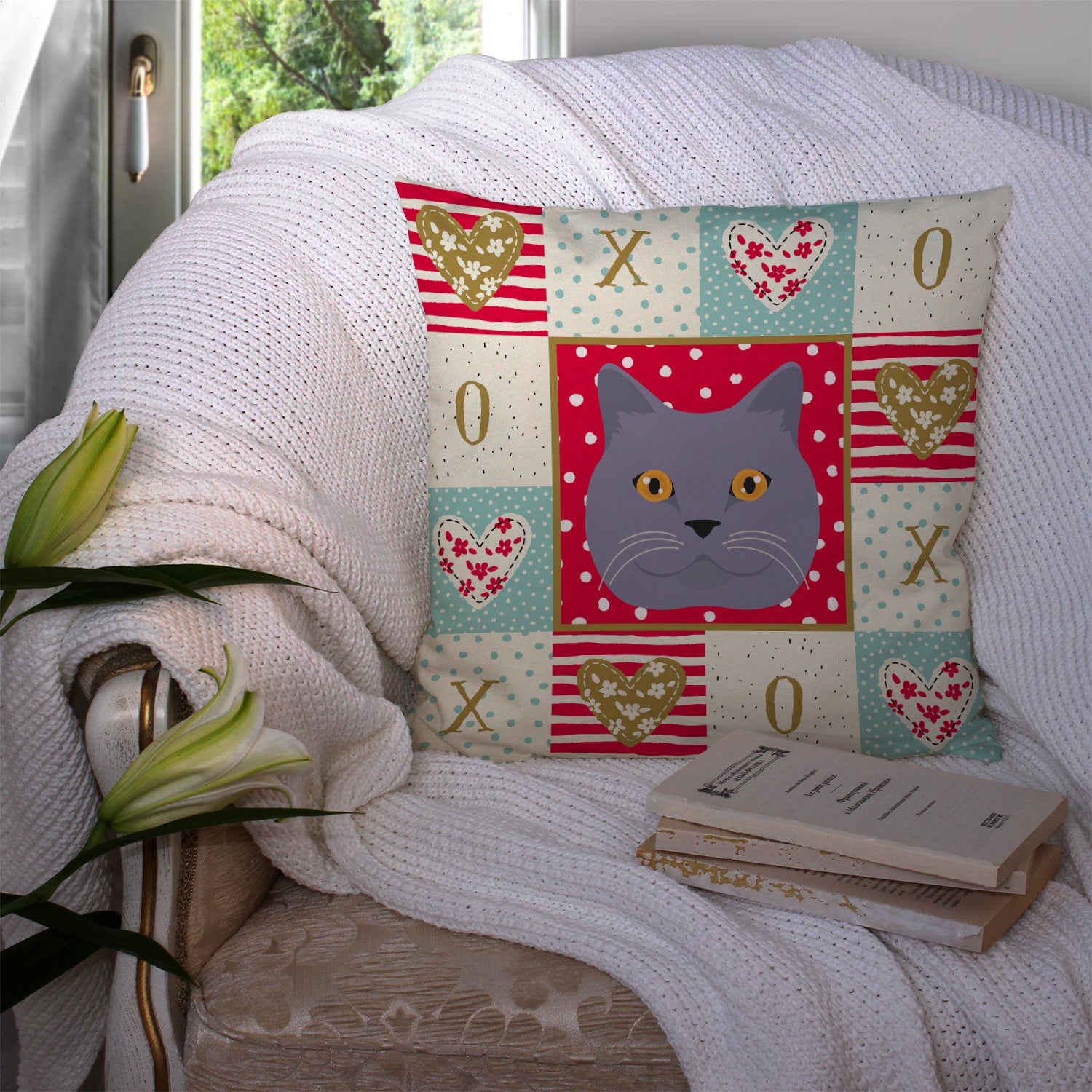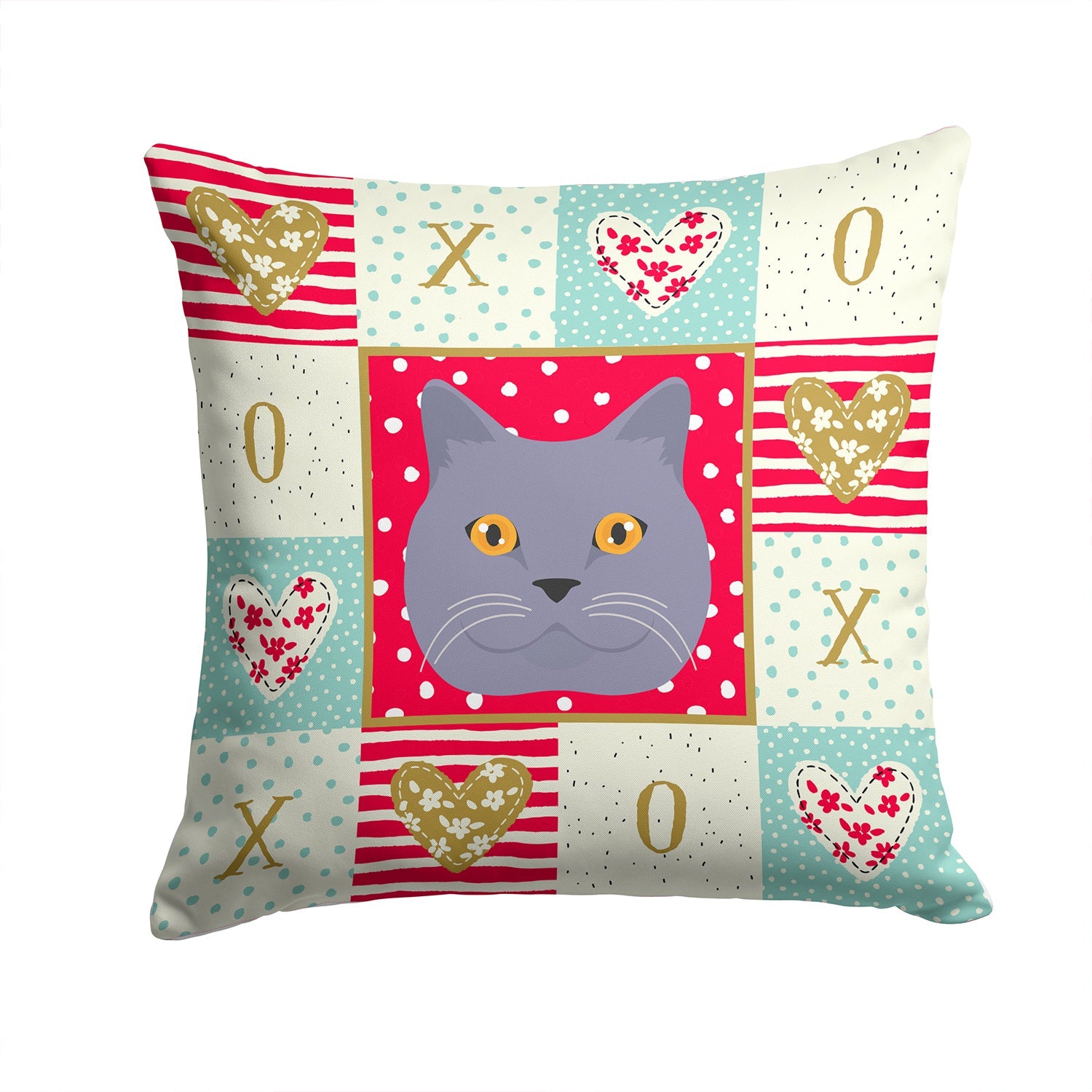 Decorate your space with our Valentine's Day British Shorthair artwork on a Pillow. Add a touch of vibrancy and comfort to your outdoor seating with Caroline's Treasures Fabric Decorative Pillow. Measuring approximately 14 inches by 14 inches, this outdoor pillow is crafted to elevate the appeal of your patio furniture, infusing it with vivid color and artistic flair. The pillow includes a 100% Polyester Fabric sham filled with a quality pillow form to provide superior comfort. Innovatively made from our brand new material, specifically woven for its water resistance, this pillow is designed for durability. The soft canvas fabric offers versatility in use, fit for your indoor couch or your outdoor patio, porch, or veranda. The fabric is dyed with colorfast dyes built for resilience against weather conditions, ensuring the pillow retains its beauty over time. Constructed by sewing three fabric pieces to create a sham, the polyester insert is then nestled inside to form the pillow, resulting in an overstuffed pillow that maintains its shape. Both the sham and the pillow insert are proudly made in the United States. As the pillows are handcrafted, there may be minor variations in size, further enhancing their unique charm. Experience comfort in style with Caroline's Treasures Fabric Decorative Pillow.