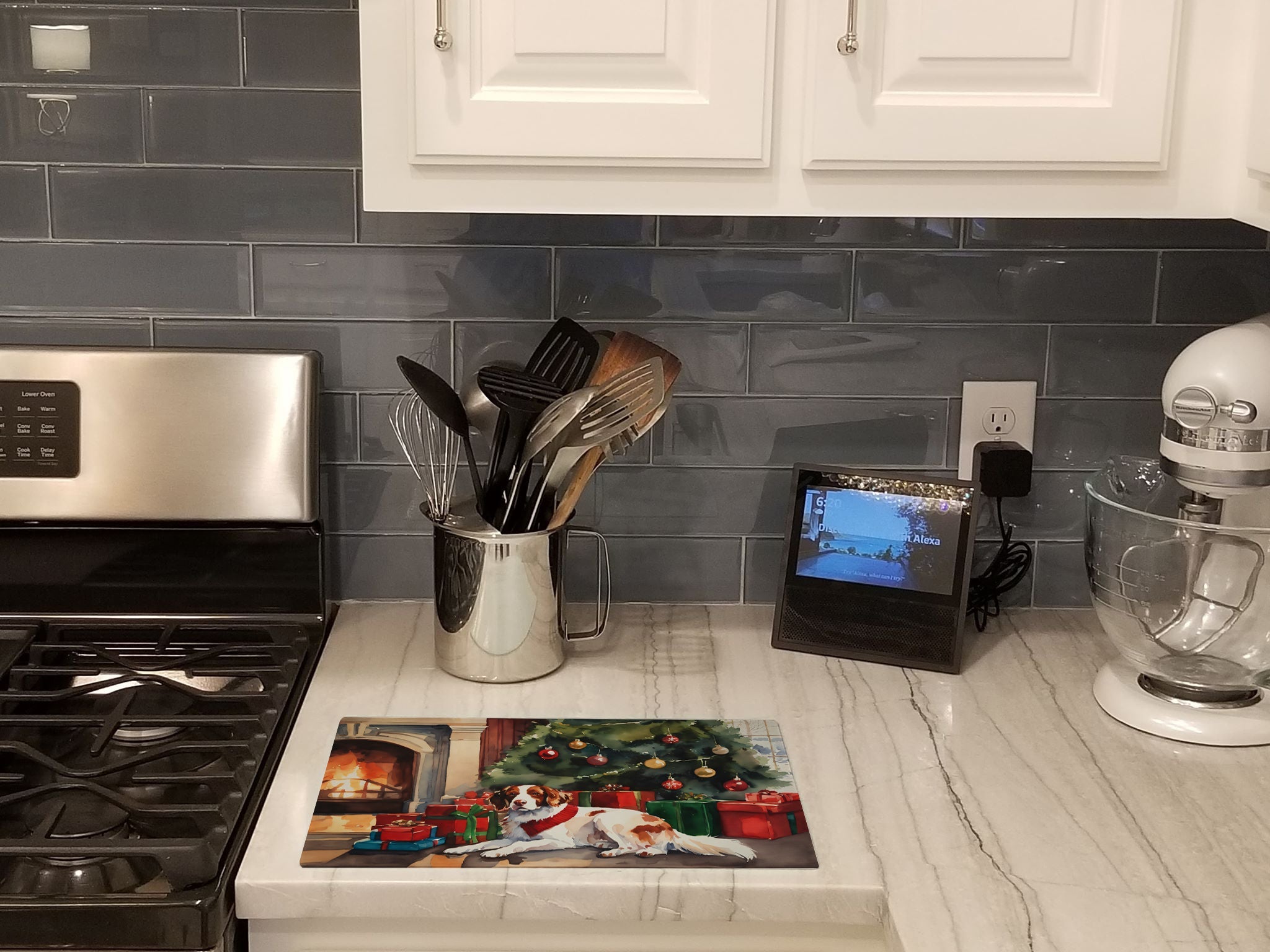 Decorate your space with our Christmas Brittany artwork on a Cutting Board. Introduce your kitchen to the vibrant, large Decorative Glass Cutting Board from Caroline's Treasures. Crafted from resilient tempered glass, this board is not only a utilitarian necessity but also a colorful art piece. With its generous dimensions of 15 inches in height and 12 inches in length, it offers ample space for all your cutting needs. Every piece showcases captivating artwork from distinguished artists, bringing an aesthetic edge to your kitchen. Beyond its attractive design, this cutting board ensures your countertop stays pristine and unscathed, owing to its heat-resistant properties. Engineered with user convenience in mind, it features non-skid feet for stability, and rounded corners for additional safety. Its robust construction renders it virtually unbreakable, guaranteeing longevity. The board comes with protective feet bumpers, maintaining its position during use. This product is recommended to be hand washed only. Proudly printed and assembled in the United States, this cutting board exemplifies superior craftsmanship. With Caroline's Treasures' Decorative Glass Cutting Board, you're investing in a blend of functionality and artistic flair.