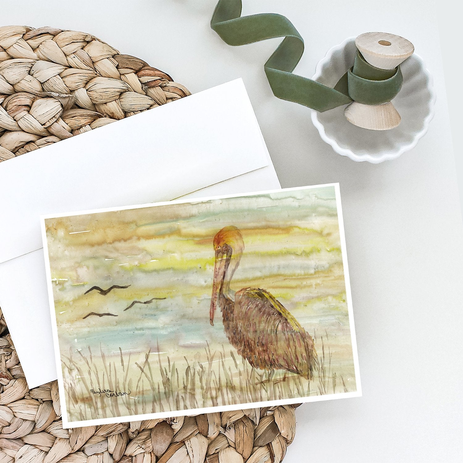 Brown Pelican Yellow Sky Greeting Cards - Blank Note Cards – 8-Pack of Artist-Designed Cards with Envelopes