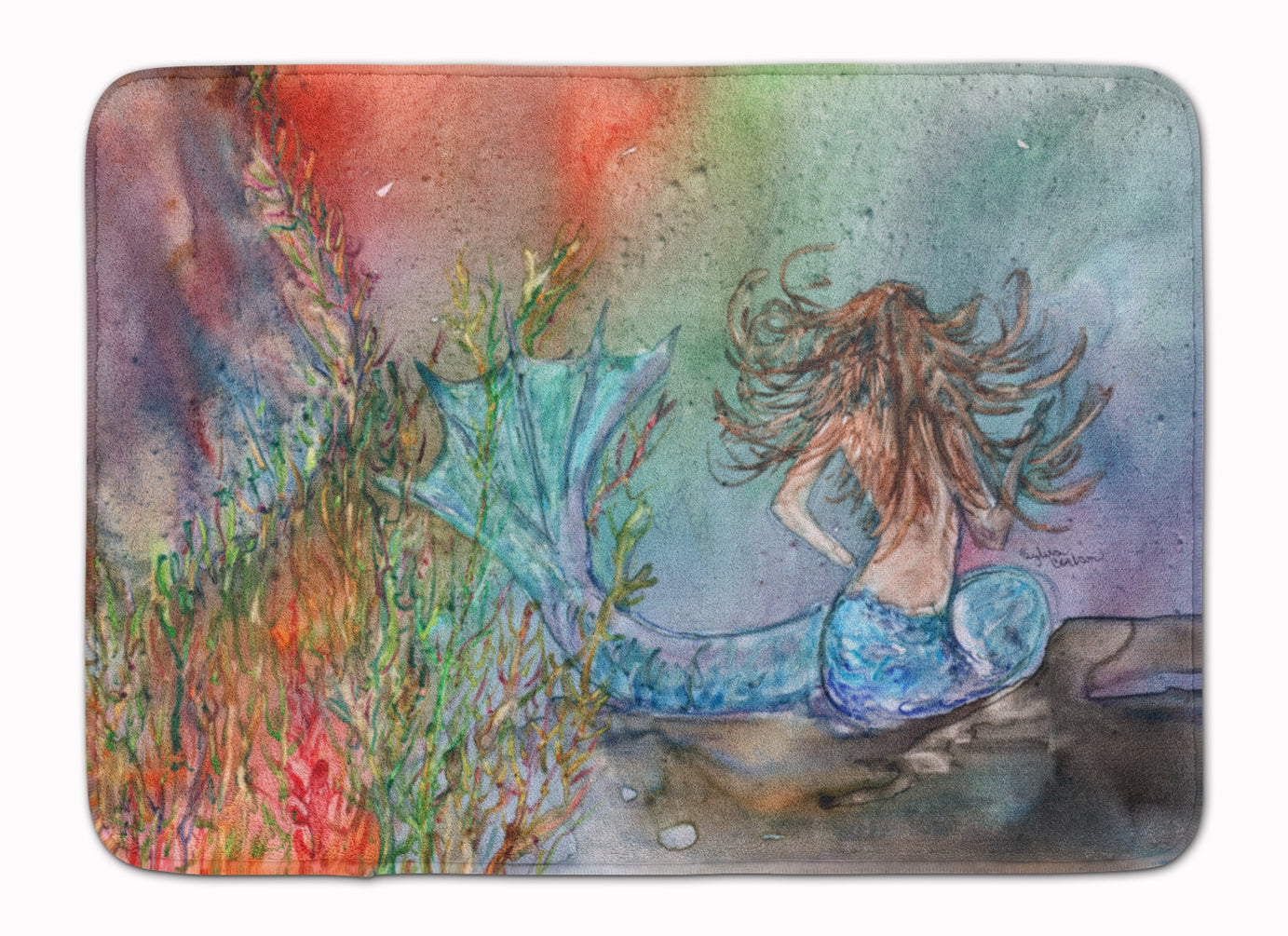 Brunette Mermaid Water Fantasy Machine Washable Memory Foam Mat 8972RUG