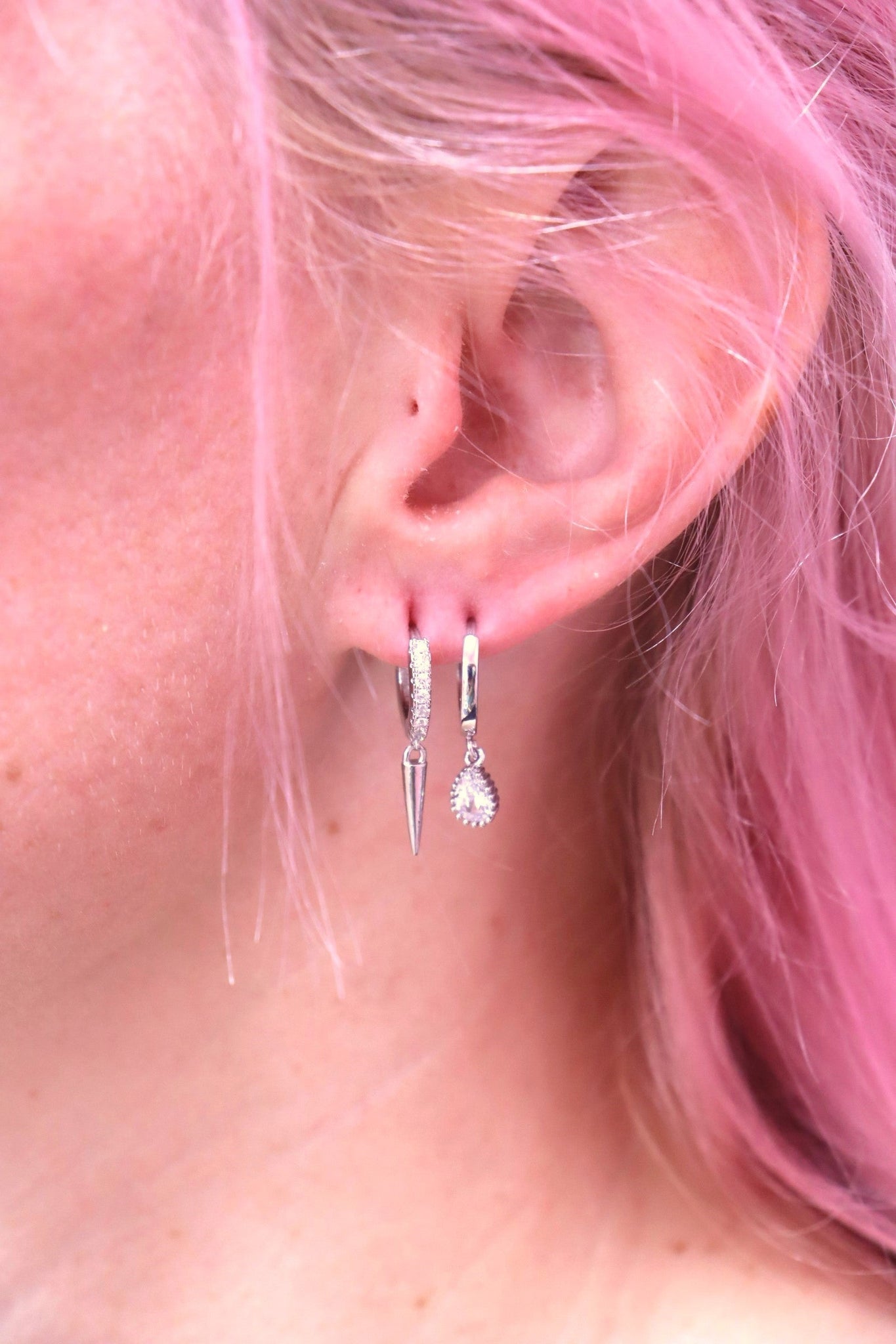 Get ready to slay in style with our Buffy Hoop Mix and Match Earring! These earrings feature a dangling spike from a glittering hoop, adding a touch of edgy glam to any outfit.